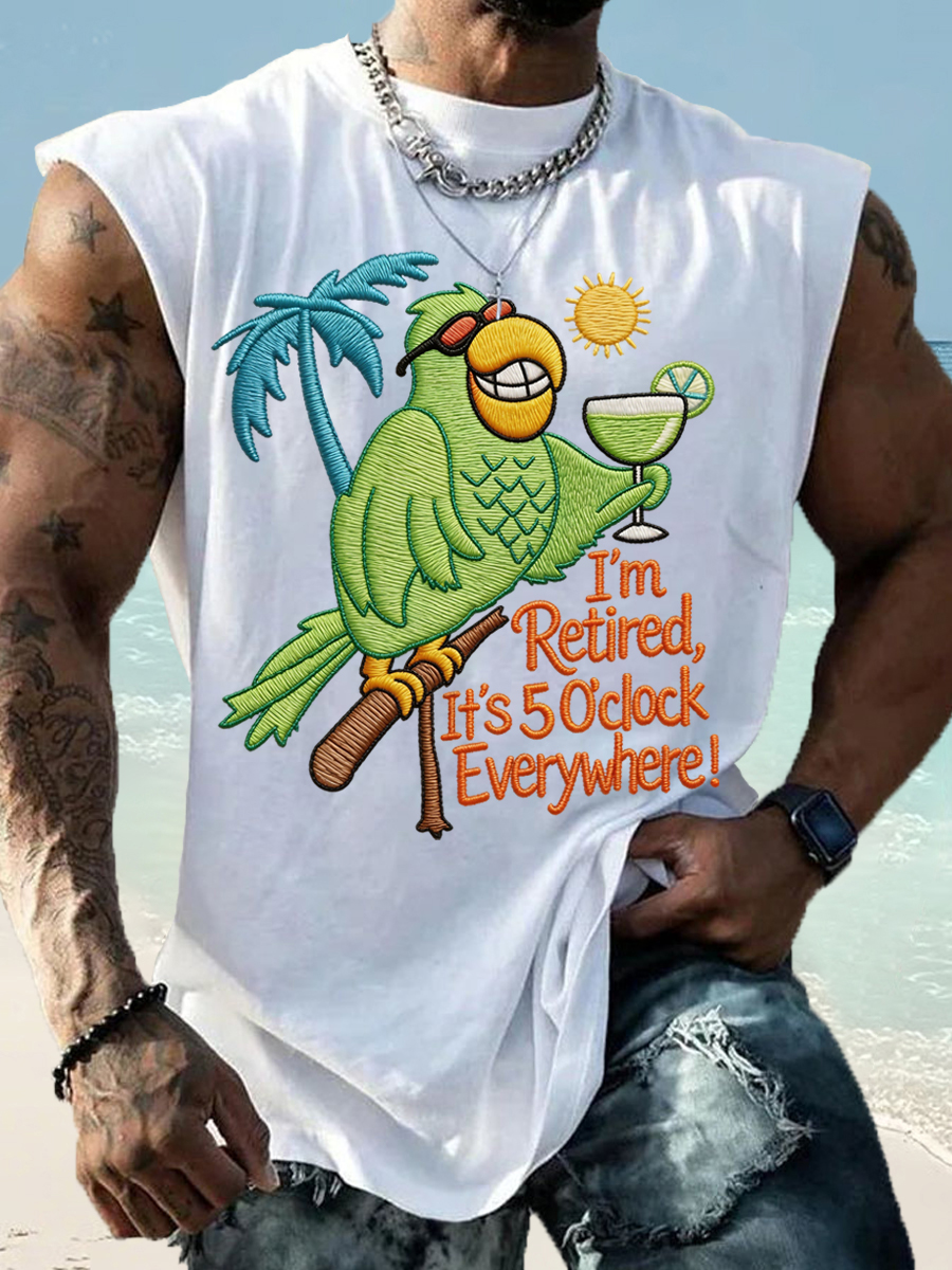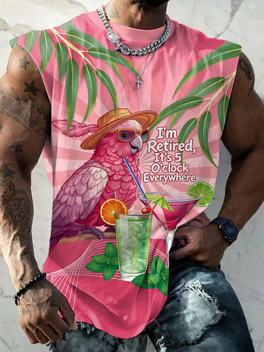 Men's I'm Retired, It's 5 O'clock Everywhere Parrot Print Casual Tank Top
