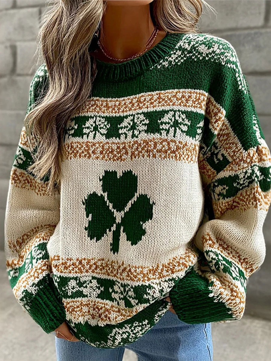 Women's St. Patrick's Day Shamrock Print Large-sized Hooded Sweatshirt