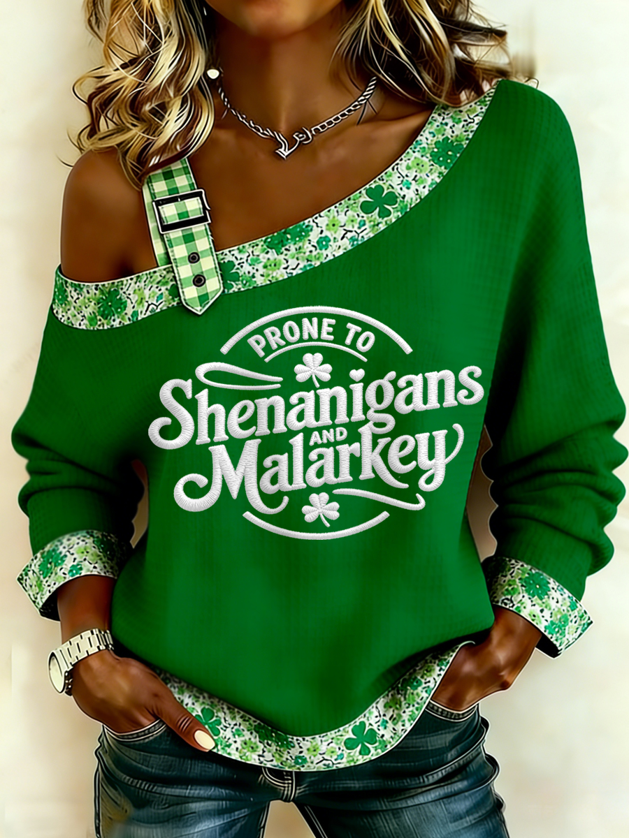 Women's St. Patrick's Day Shamrock Art V-Neck Top