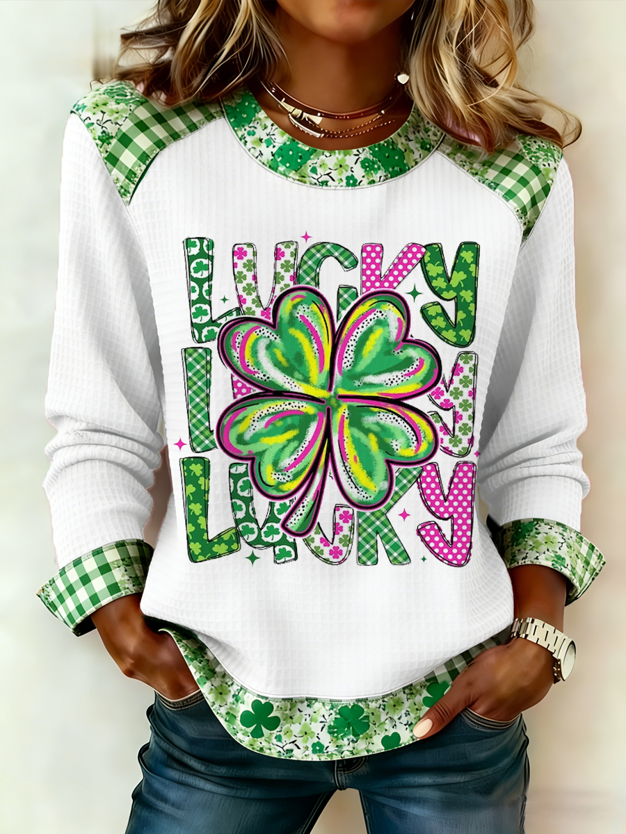 Women's St Patrick's Day Shamrock Art Waffle T-shirt