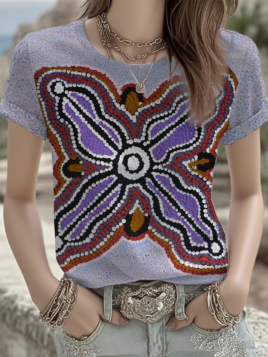 Women's Australian Aboriginal art and design Printed short-sleeved T-shirt