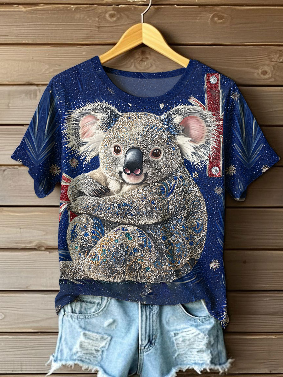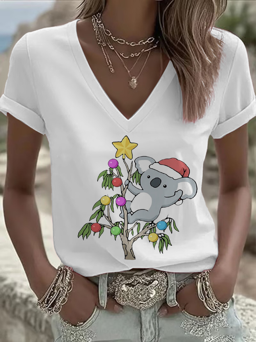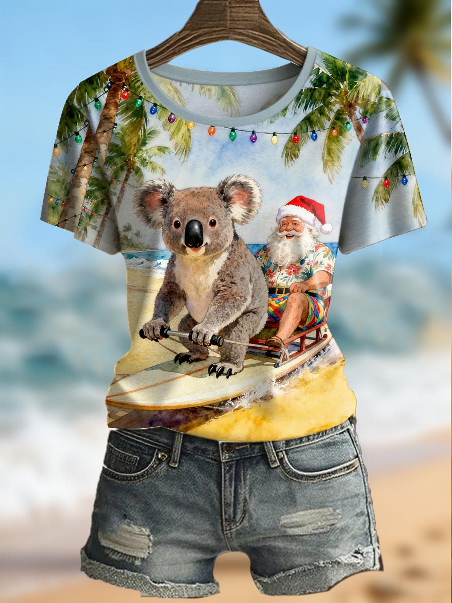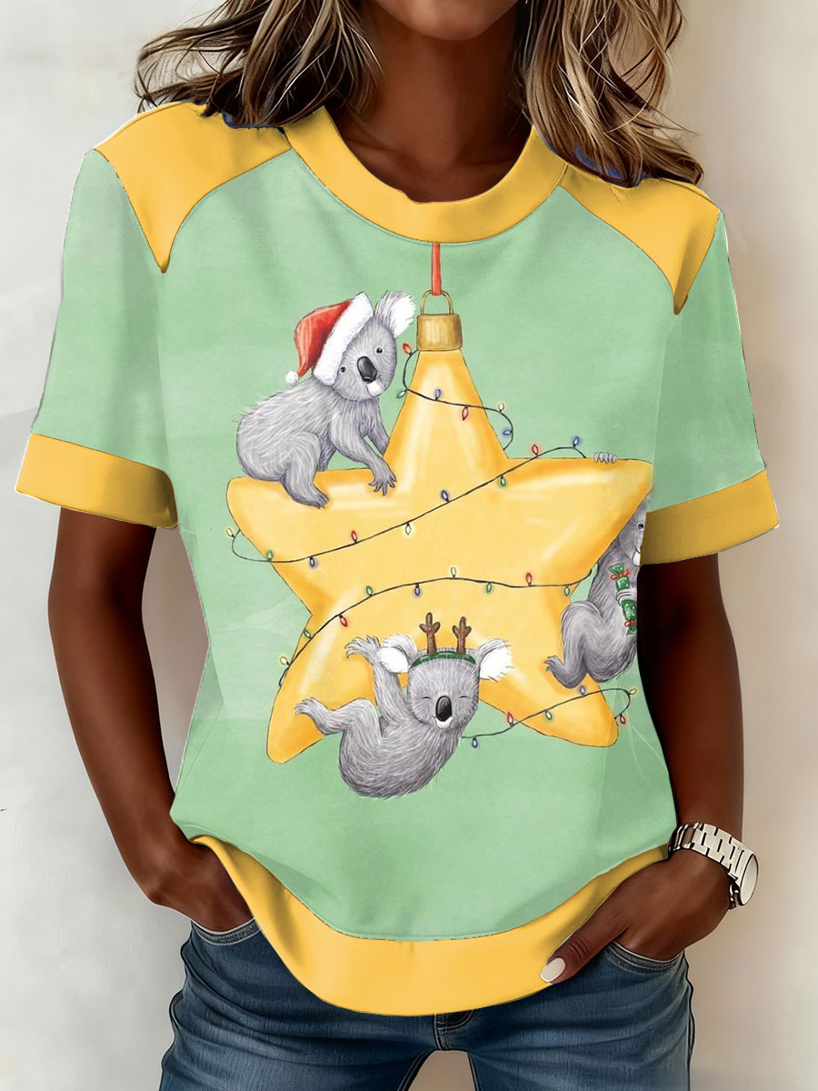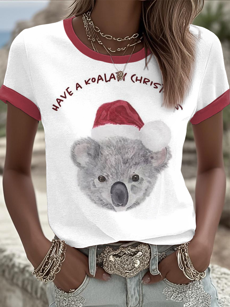 Women's Funny Koala Christmas Printed T-shirt