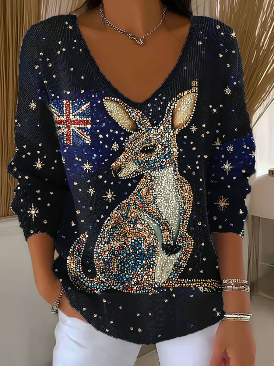 Women's AU Flag Art Kangaroo Printed Tops