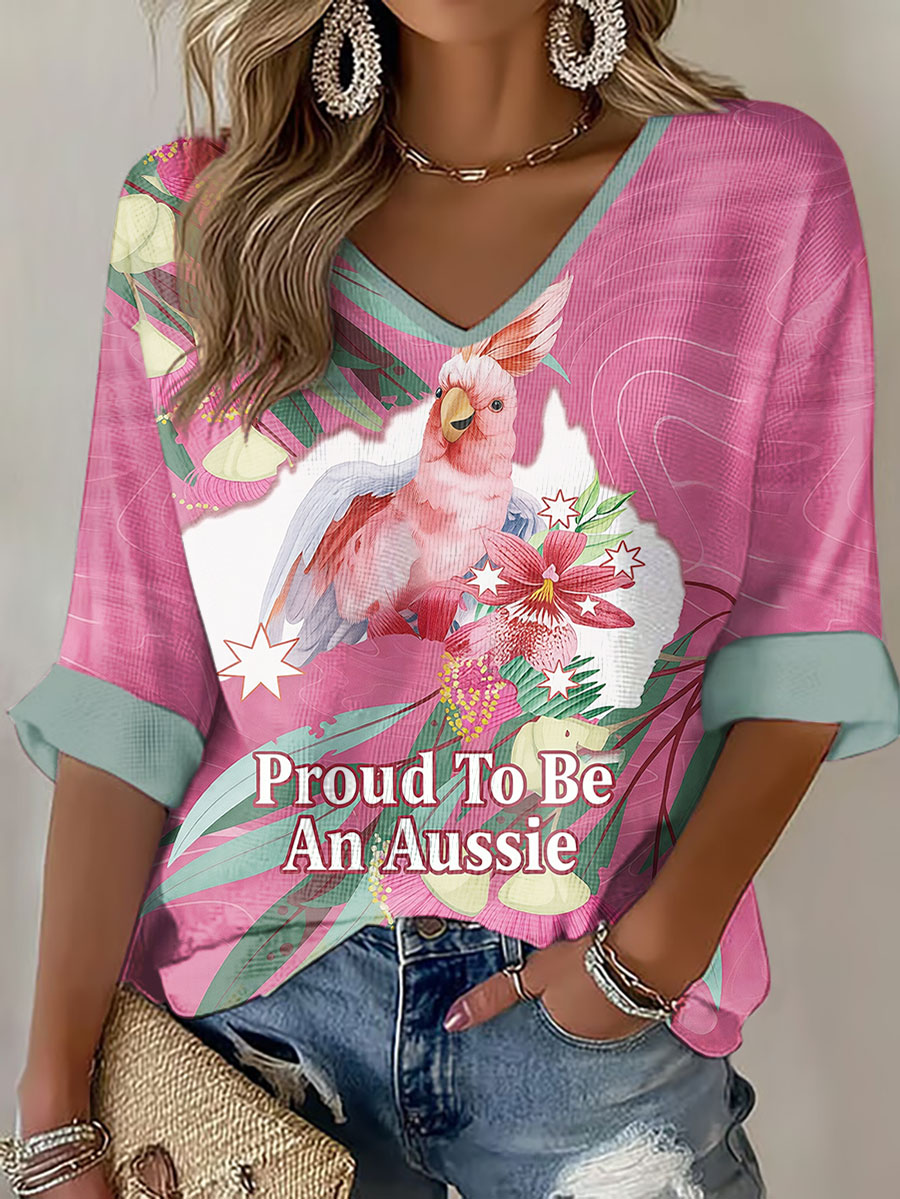 Women's Pink Cockatoo Aussie Proud Printed Waffle T-shirt