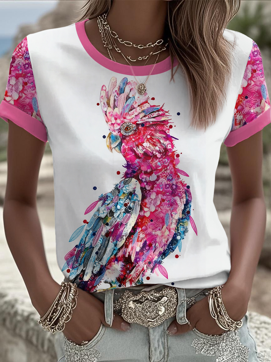 Women's Aussie Cute Pink Cockatoo Printed T-shirt