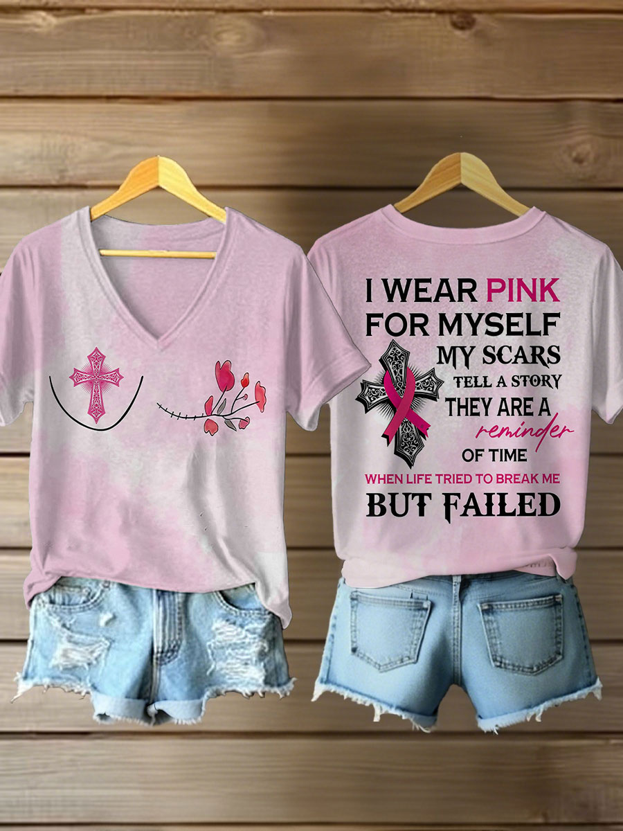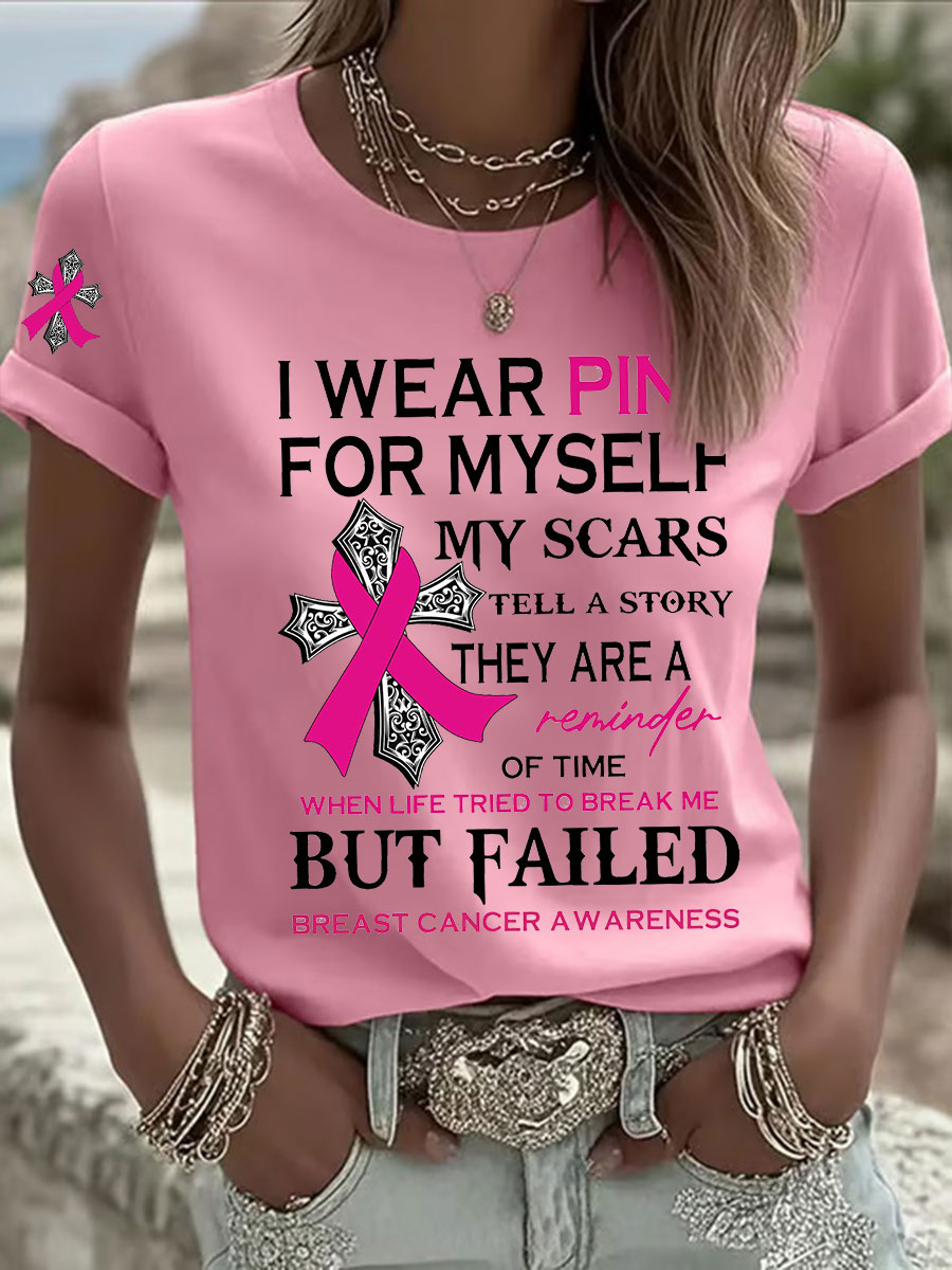 Women's Breast Cancer Awareness I Wear Pink For Myself Print Casual T-Shirt