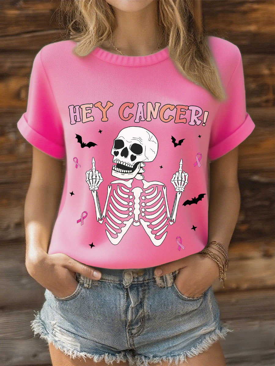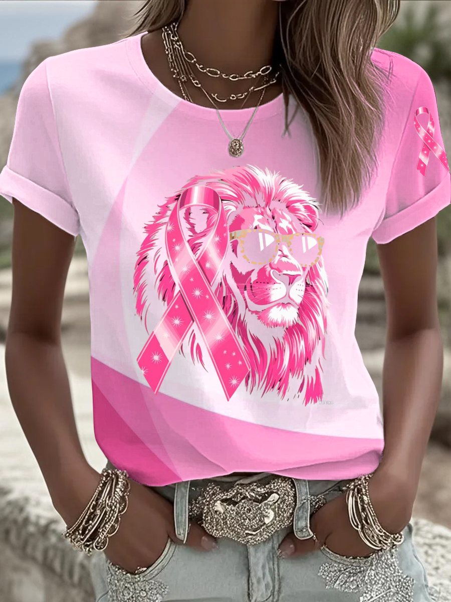 Women's Breast Cancer Awareness Pink Ribbon Print Casual T-shirt
