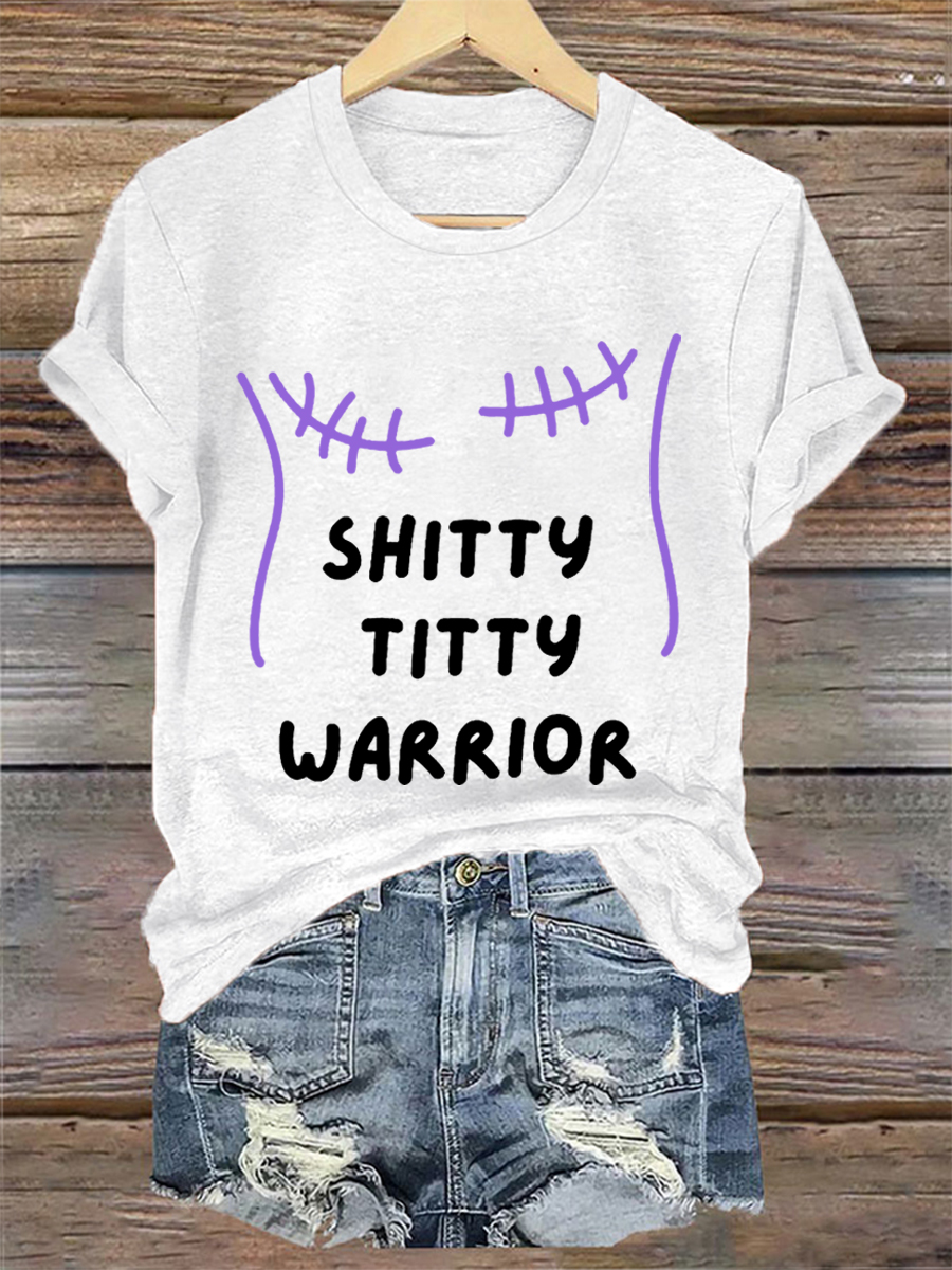 Women's Shitty Titty Warrior Breast Cancer Awareness Support Tee