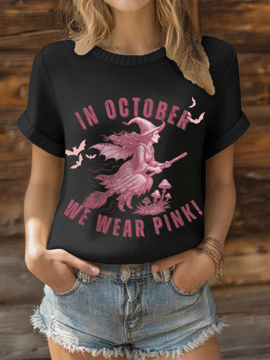 Women's In October We Wear Pink Imitation Sweater Short-sleeved T-shirt