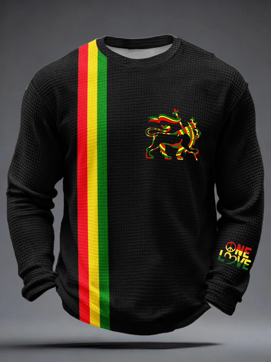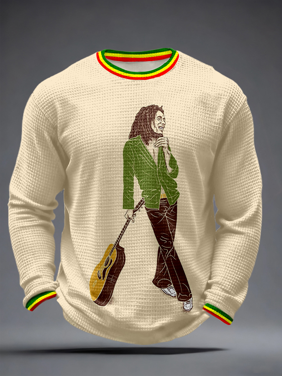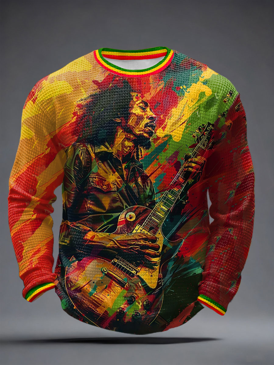 Men's Reggae Music Inspired Print Waffle Long-Sleeve Top