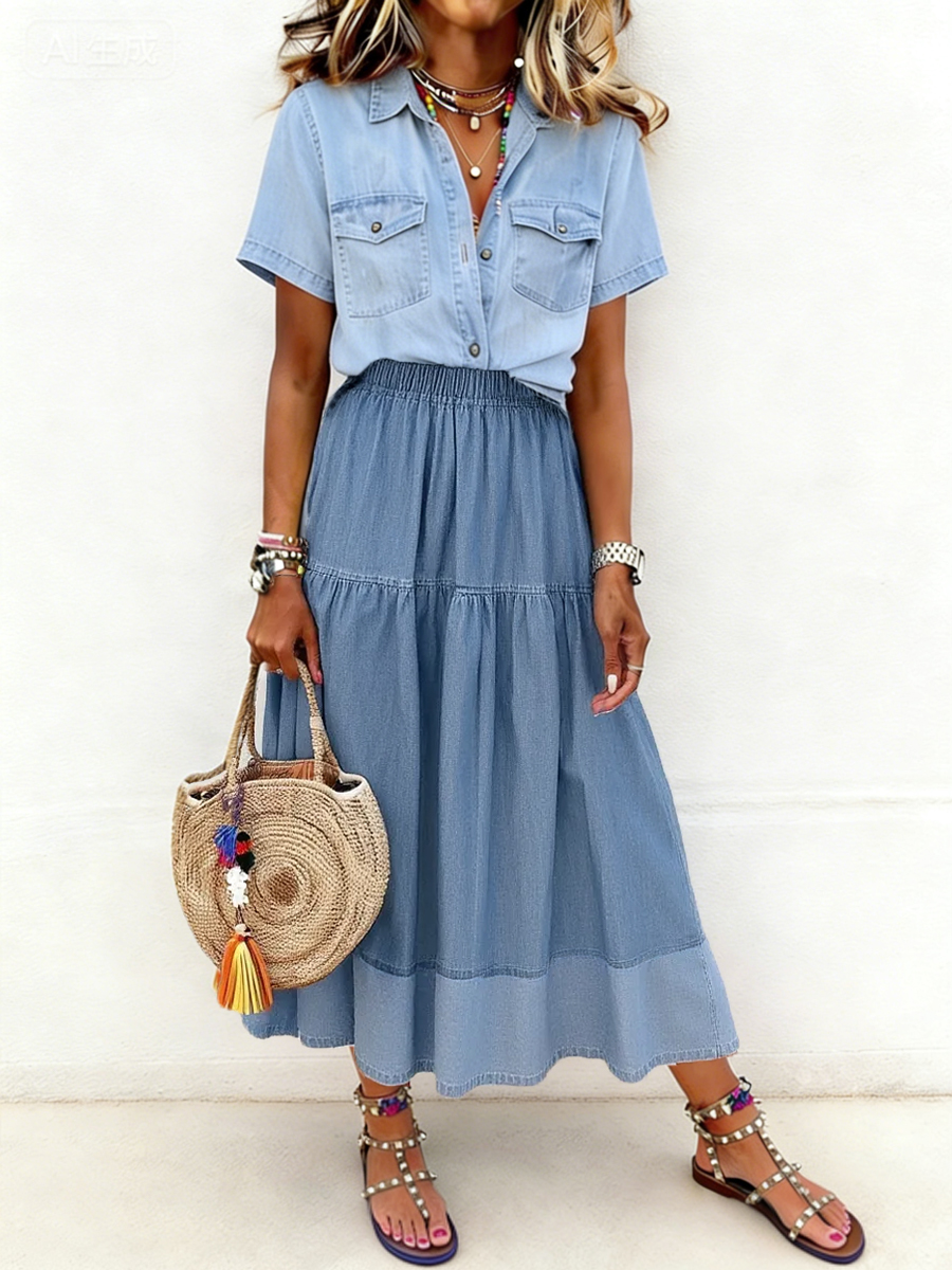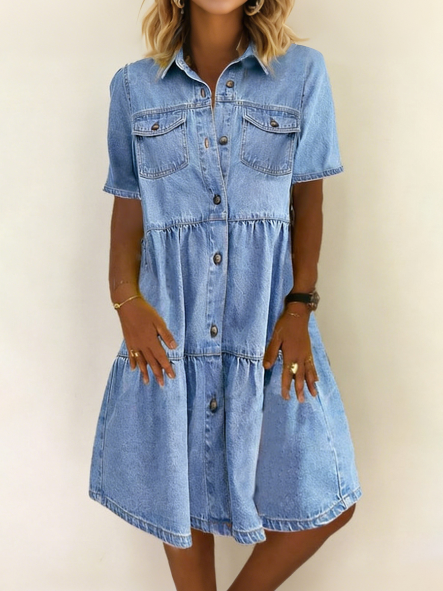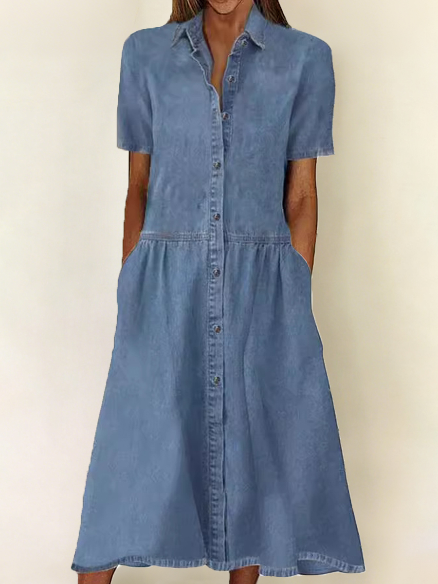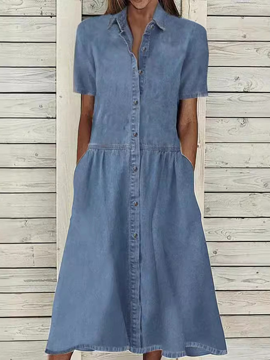 Women's Casual Elegant Short-Sleeve Denim Dress