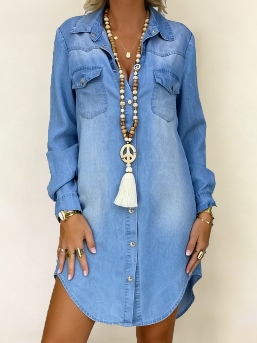 Women's Casual Elegant Long-Sleeve Denim Dress
