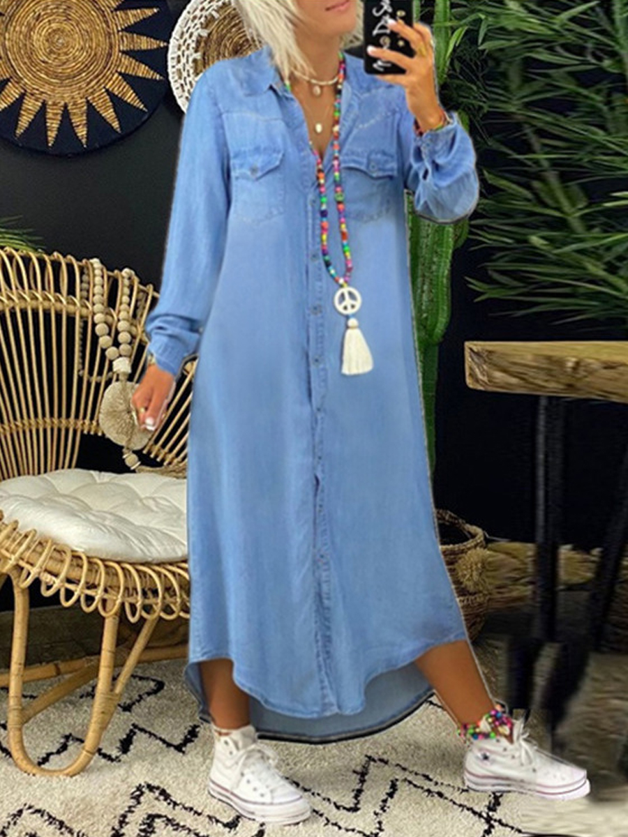 Women's Casual Elegant Mid-Length Denim Style Shirt Dress