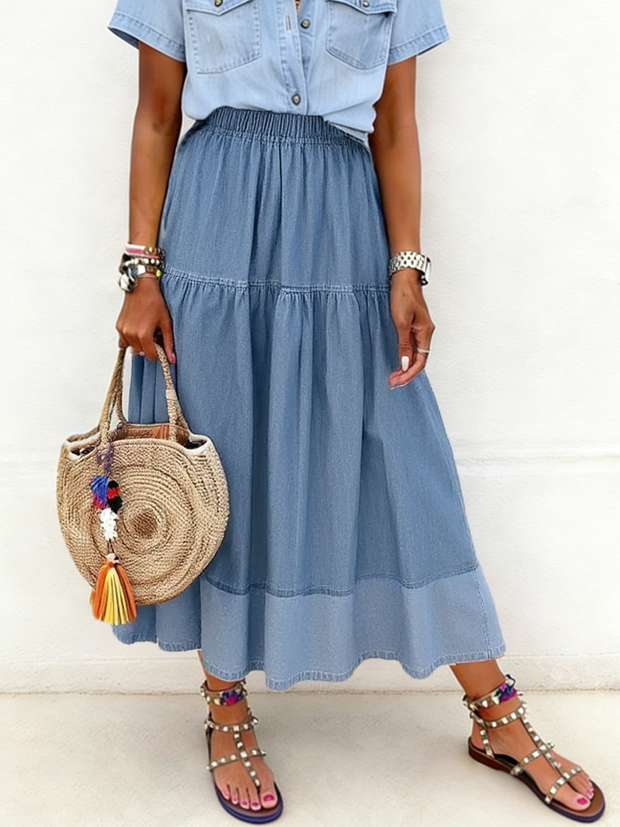 Women's Lightweight Mid-Length Denim-Style Shirt Dress