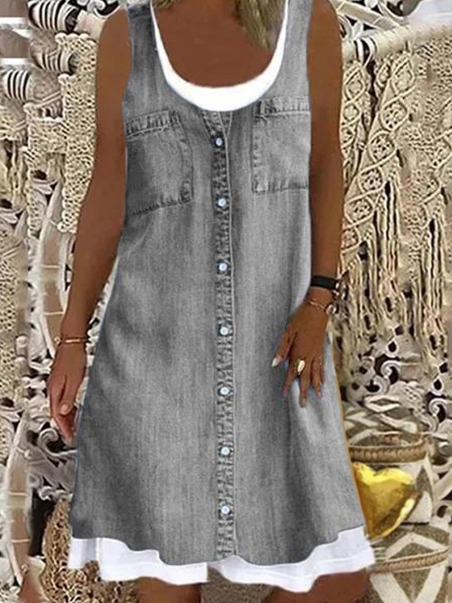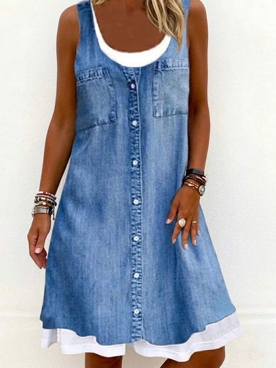 Women's Casual Elegant Sleeveless V-Neck Denim Dress