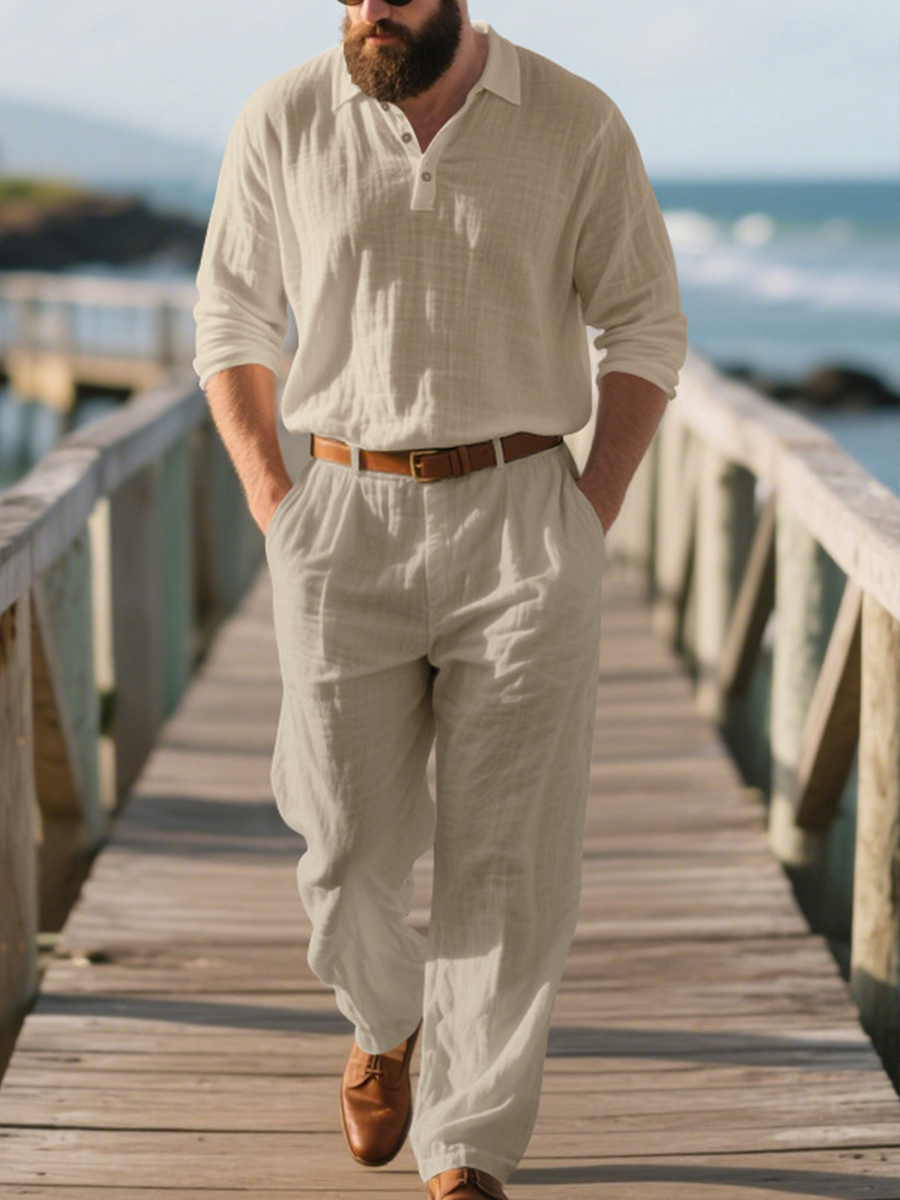 Men's Casual Loose Simple Polo Shirt Long Sleeve And Long Pants Two-piece Set