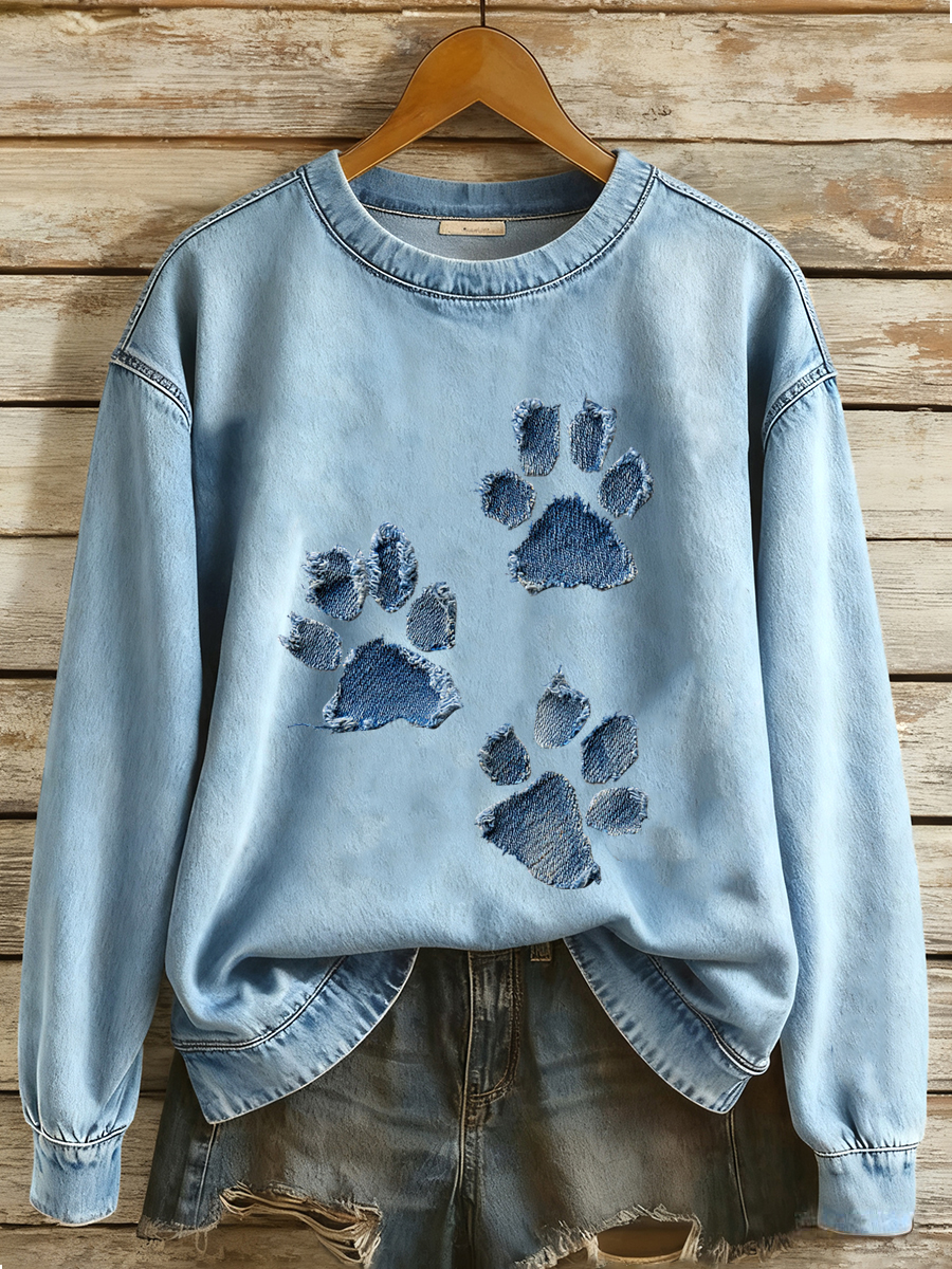 Women's Lovely Furry Dog Pattern Denim Patchwork Art Sweatshirt