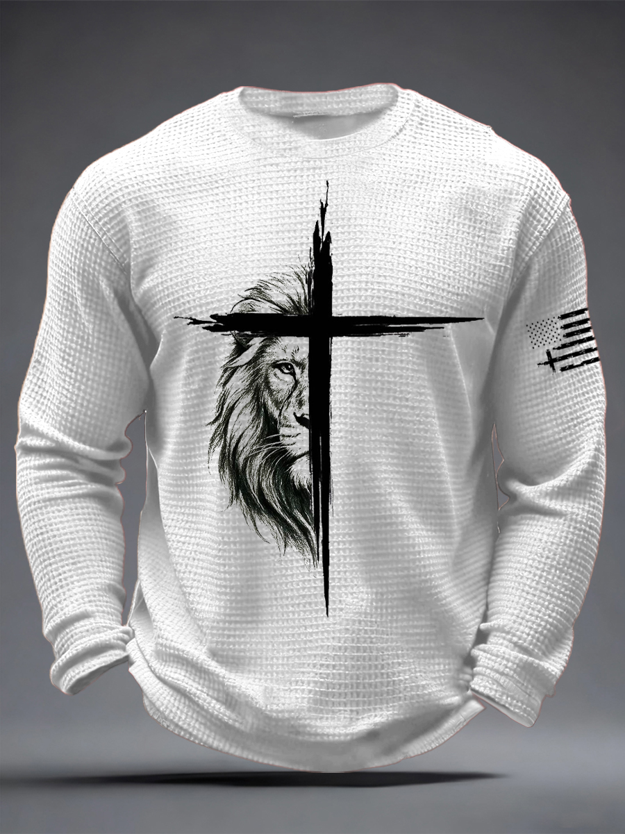 Men's Jesus Lion USA Flag Print Casual Long Sleeve T-Shirt