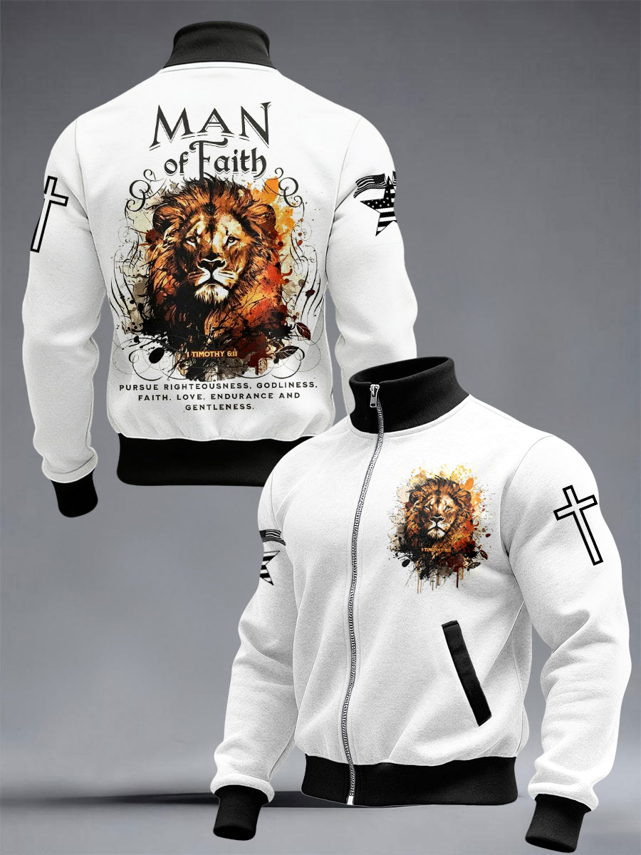 Men's Jesus The Way The Truth The Life Lion Print Casual Plush Zipper Pullover