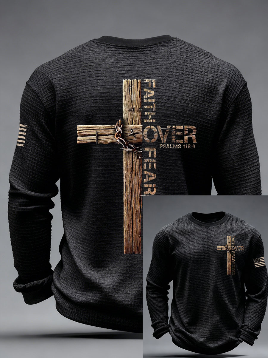 Men's Faith Over Fear Print Casual Waffle Long Sleeve T-Shirt