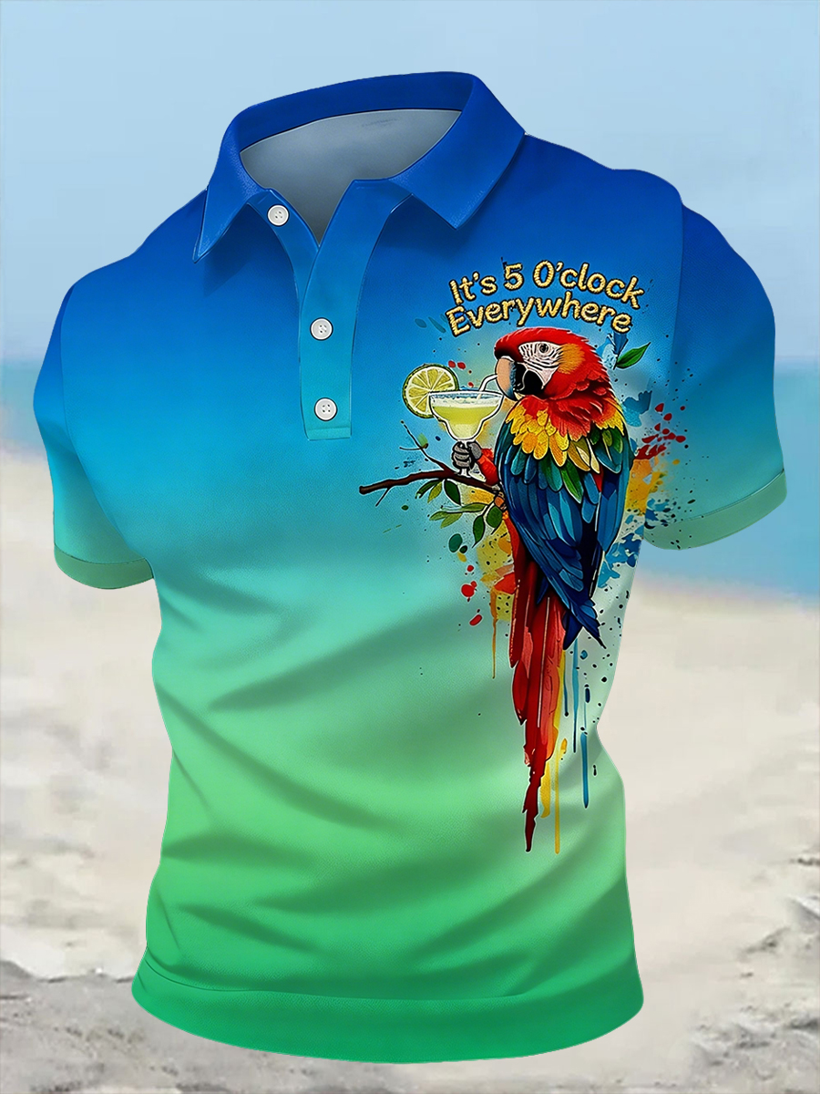 Men's I'm Retired It's 5 O'clock Everywhere Parrot Print Casual Polo