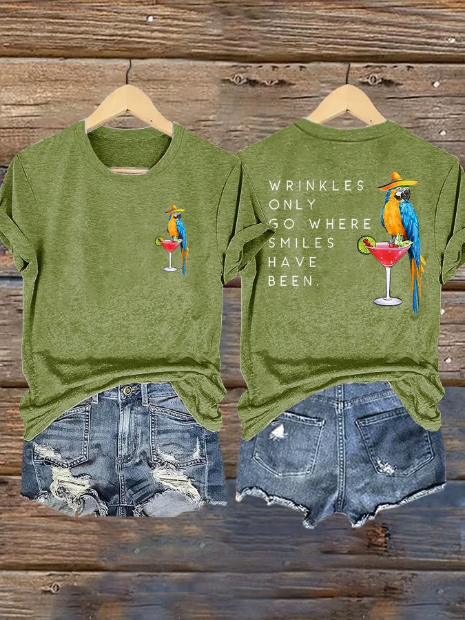 Women's Retro Wrinkles Only Go Where Smiles Have Been Print Short Sleeve T-shirt