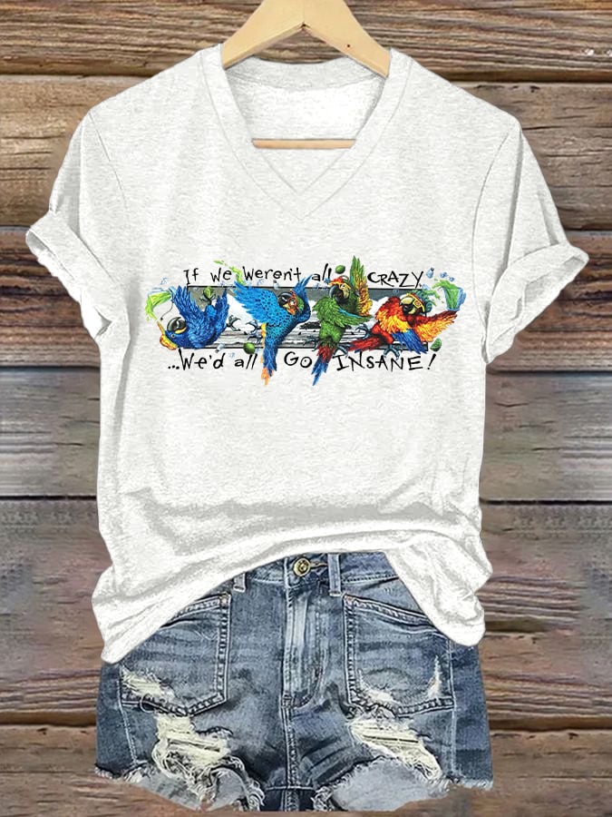 Women's Retro If We Weren'T All Crazy We Would Just Go Insane Print T-Shirt
