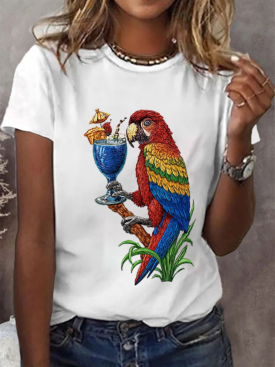 Women's It‘s 5 O'clock Somewhere Parrot Print Casual O-Neck Tee