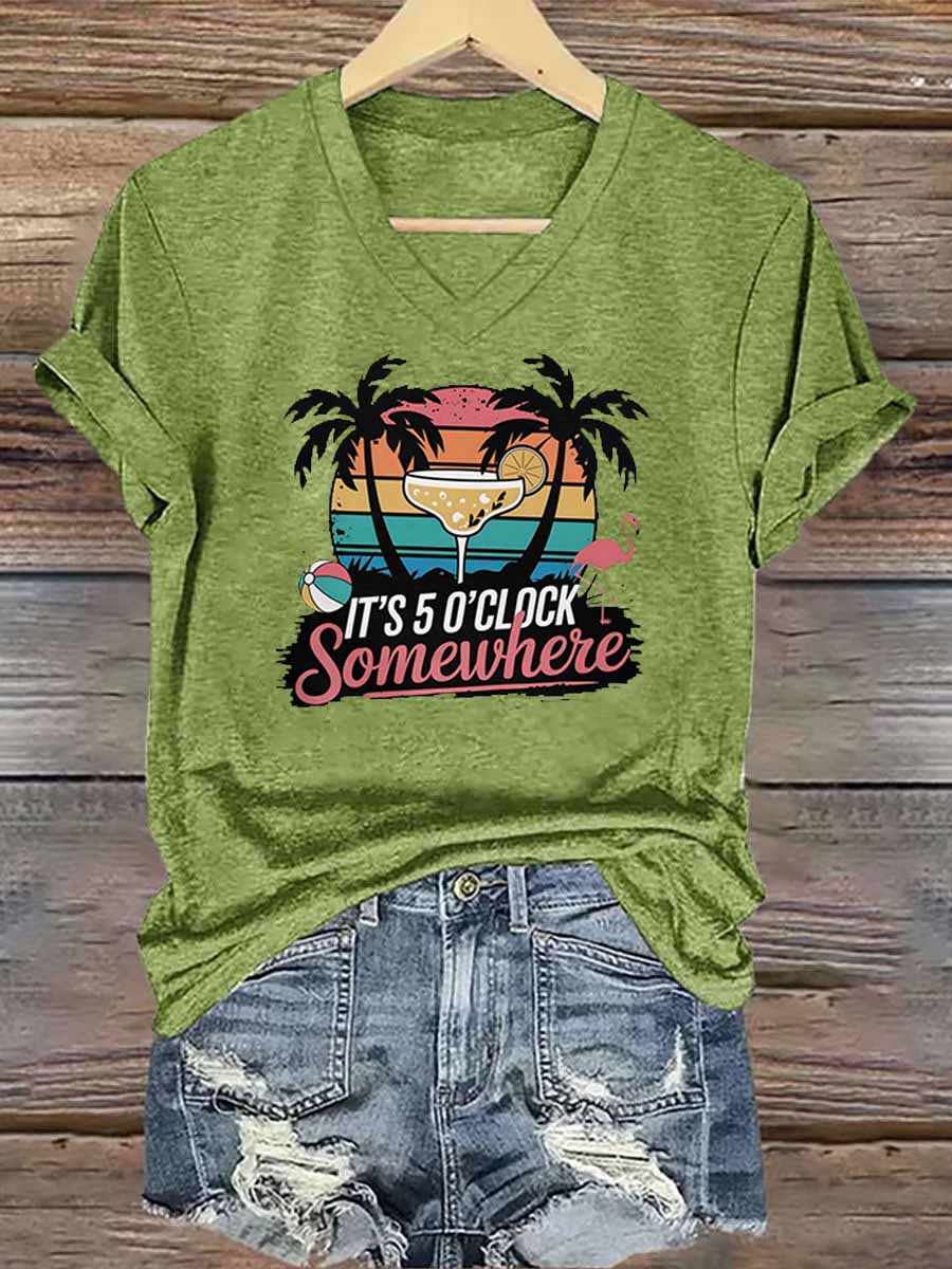 Women's Its 5 O'clock Somewhere Casual V-Neck Tee