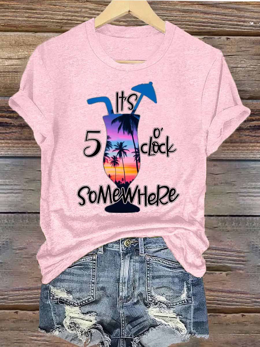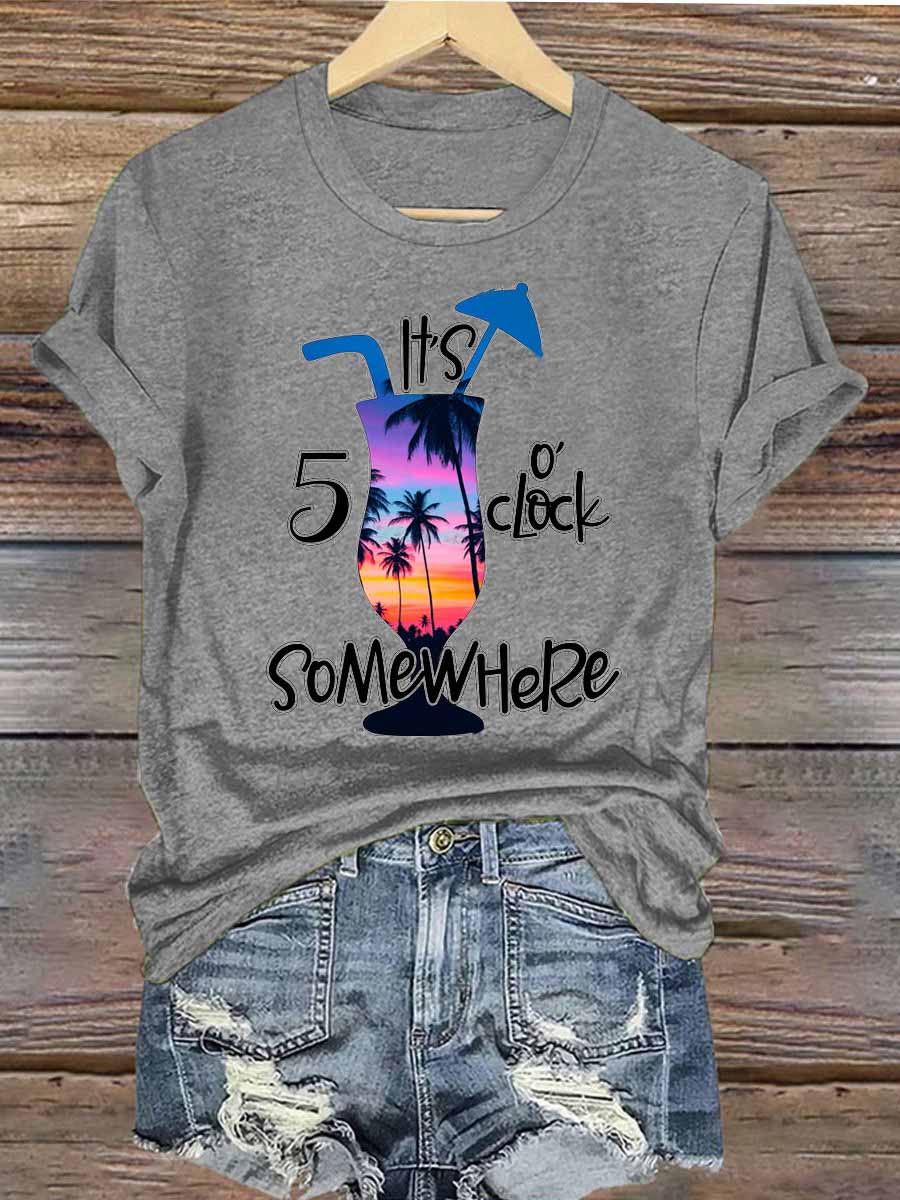 Women's Funny It's 5 O’clock Somewhere Print Casual Off-Shoulder Short-Sleeve Tee