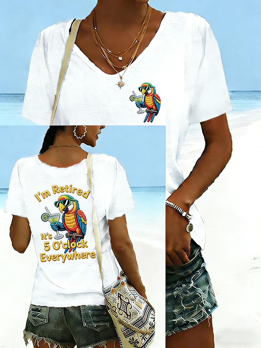 Women's I'm Retired It's 5 O'clock Everywhere Parrot Print Casual Short Sleeve T-Shirt