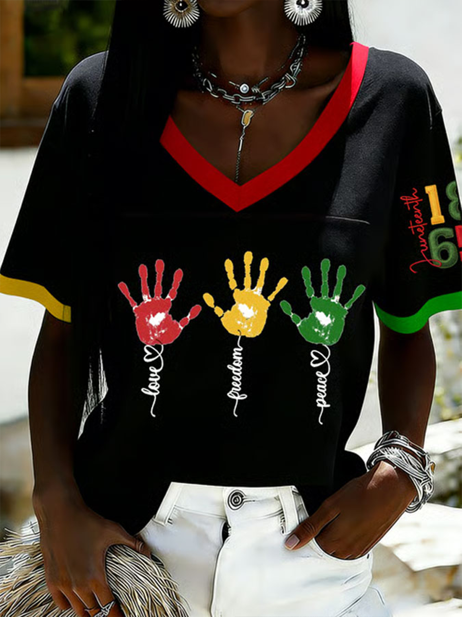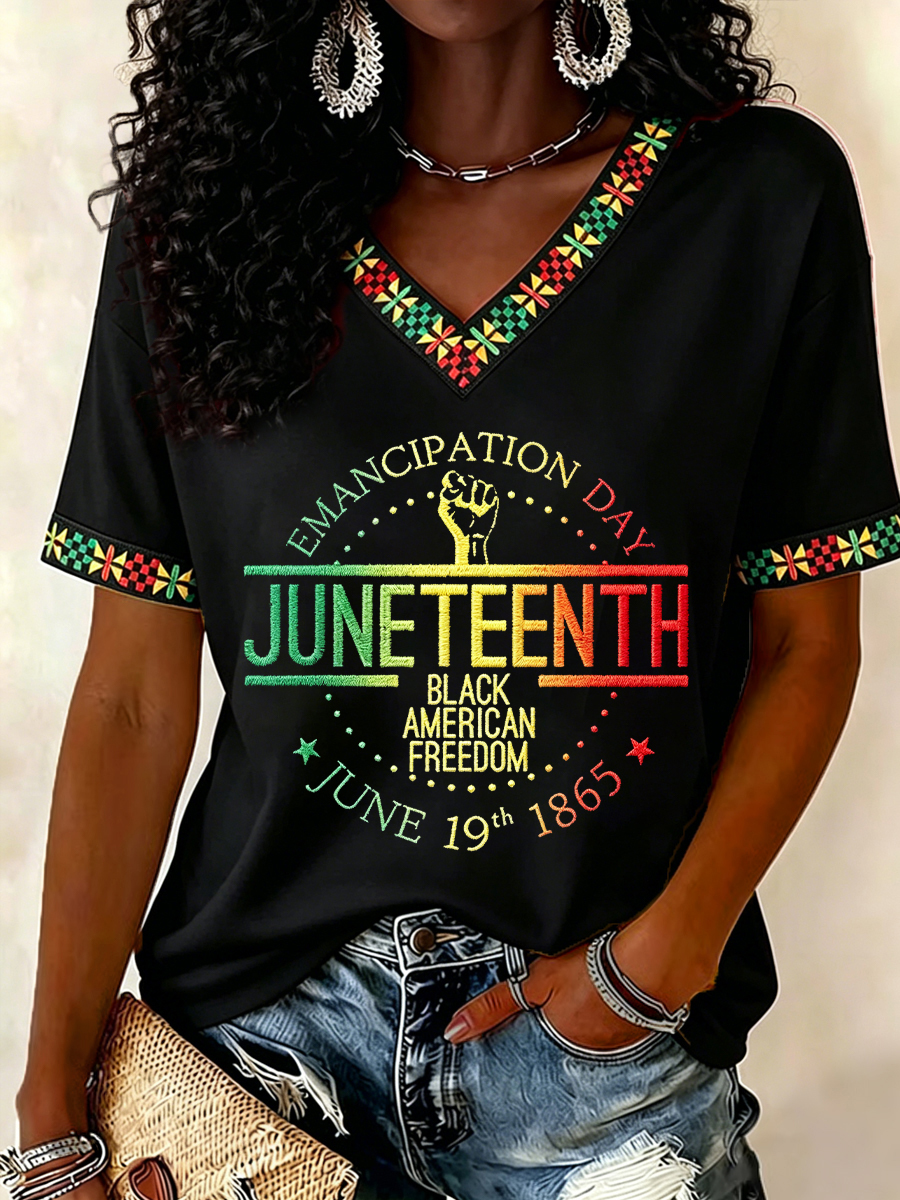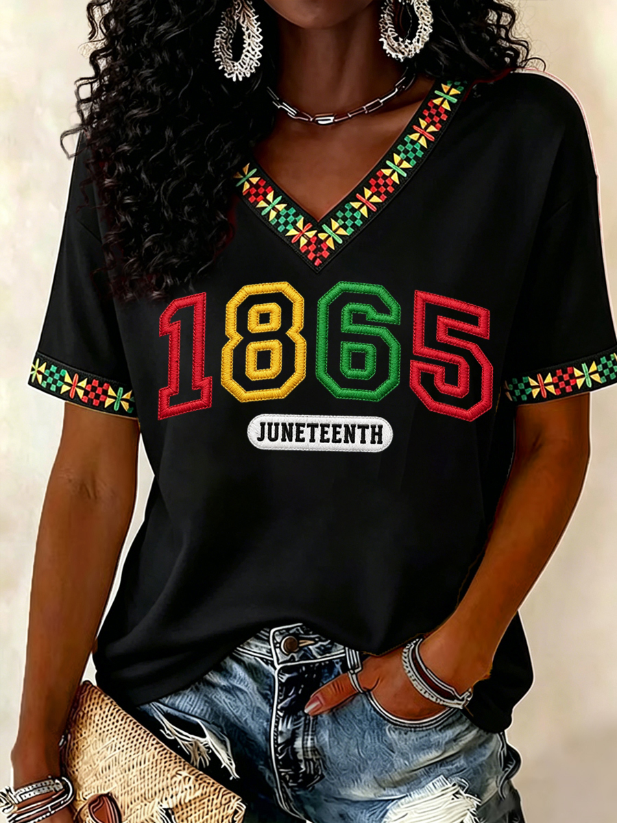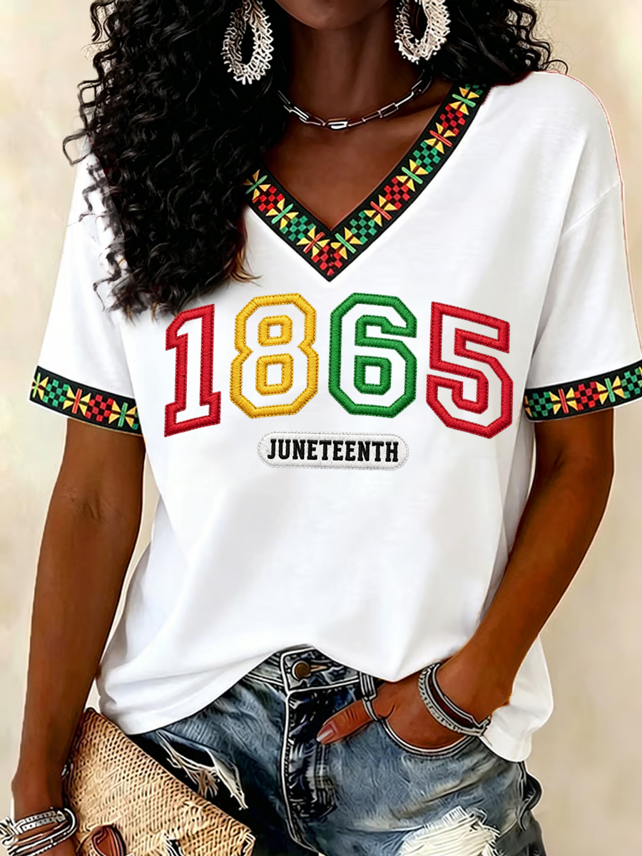 Women's Juneteenth 1865 Print Casual V-Neck Tee