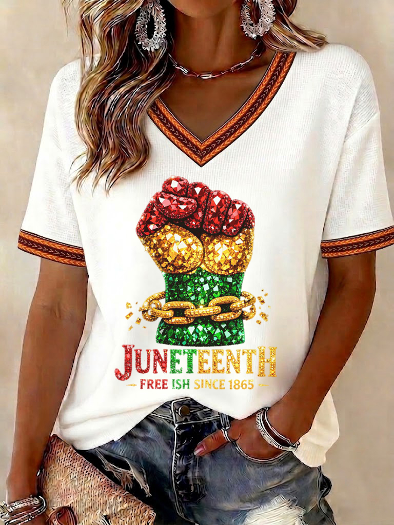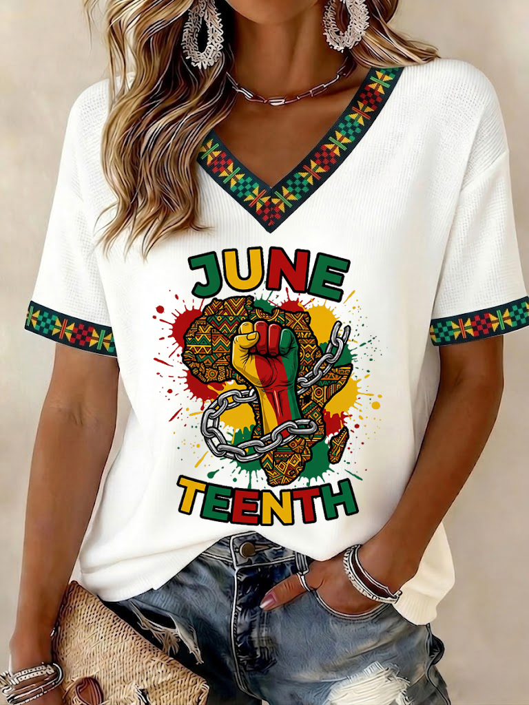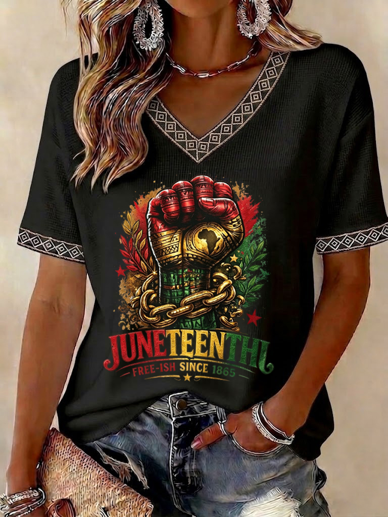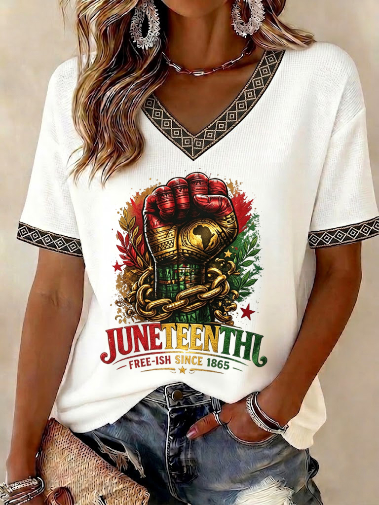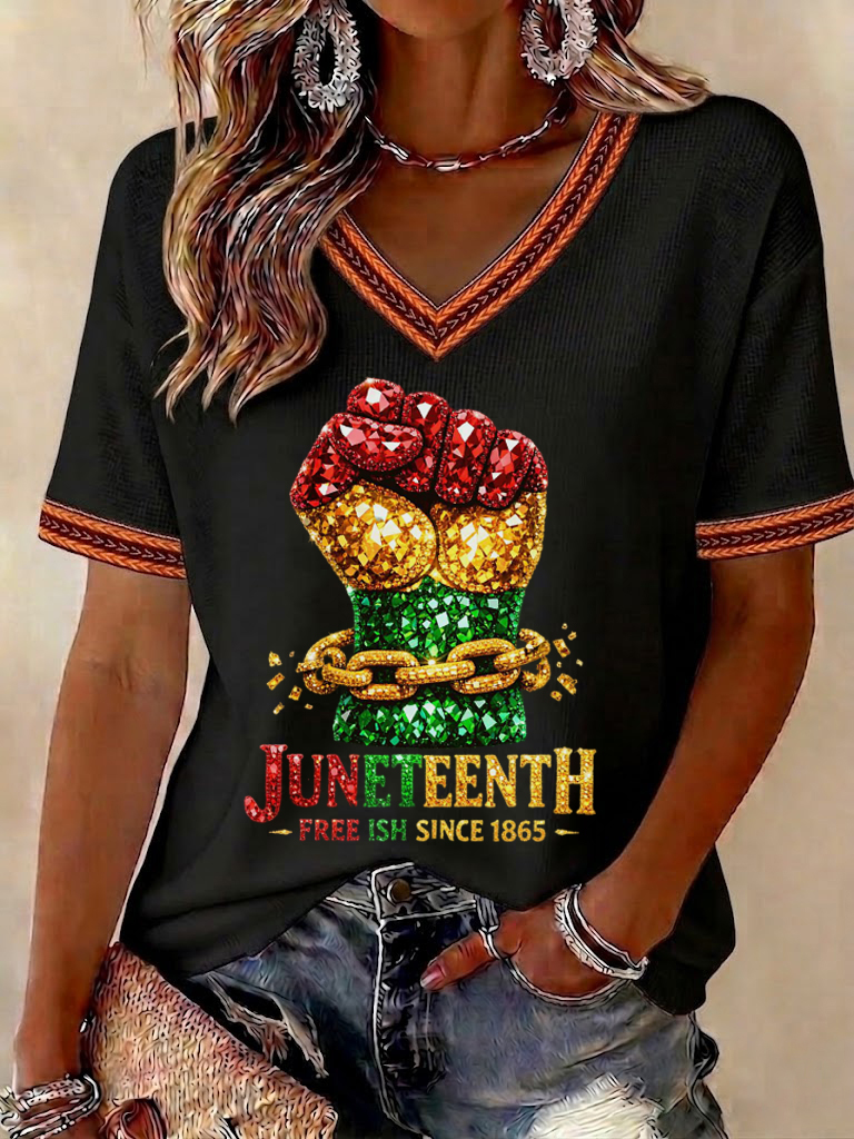 Women's Juneteenth 1865 Print Casual V-Neck Tee