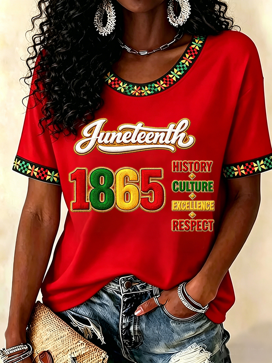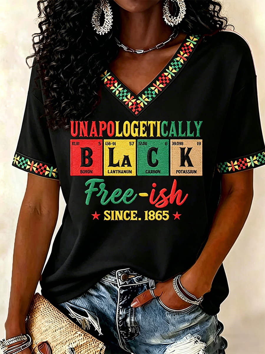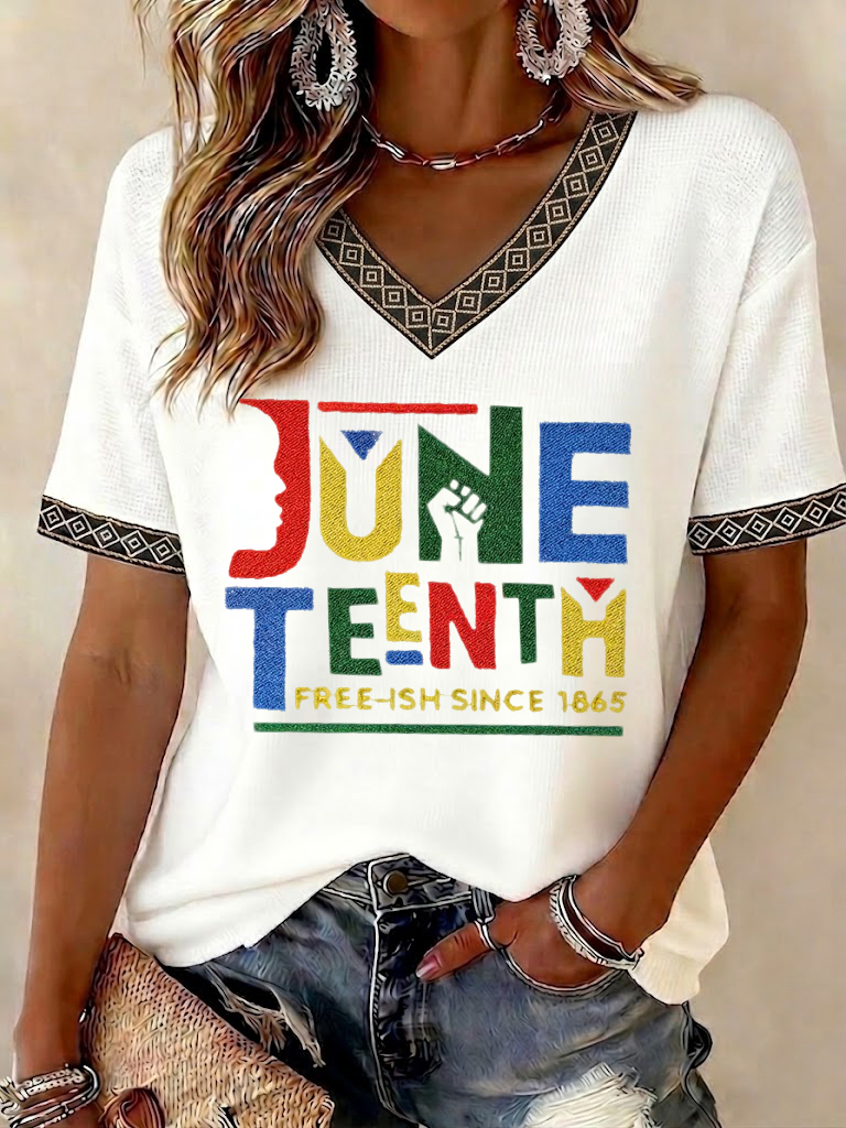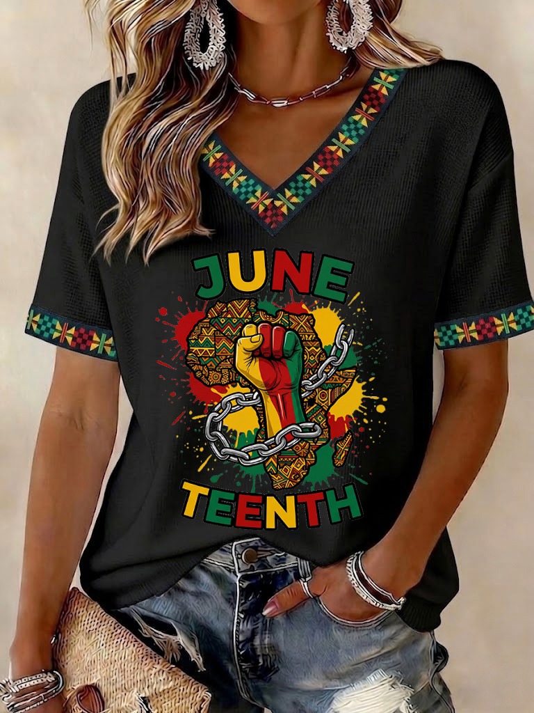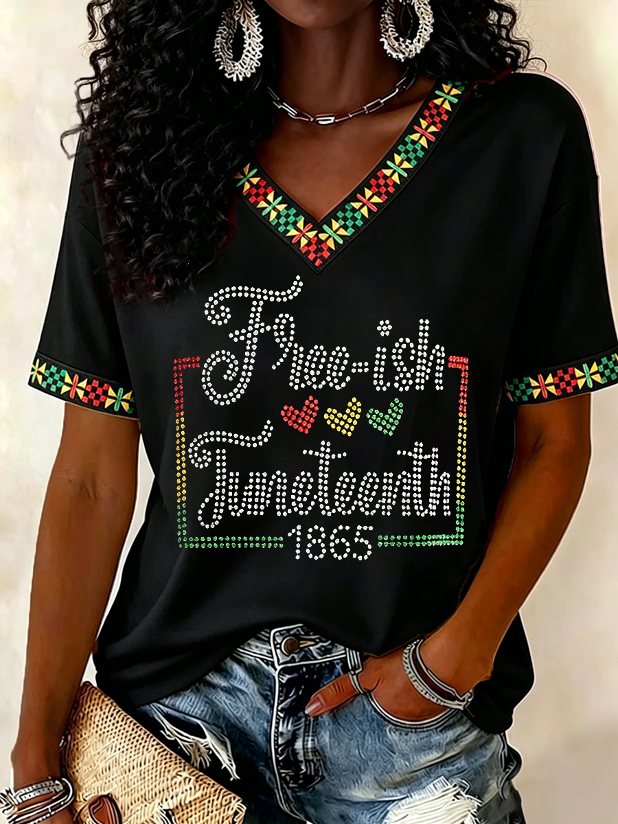 Women's Juneteenth 1865 Print Casual V-Neck Tee