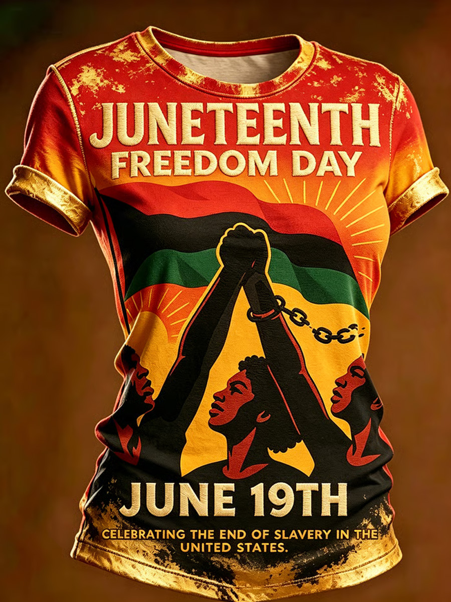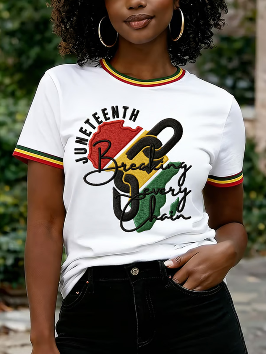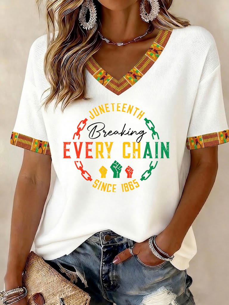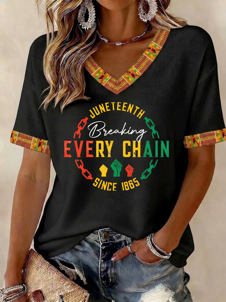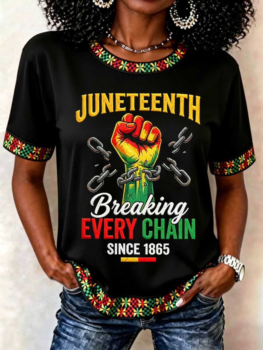 Women's Juneteenth Breaking Every Chain Print Casual Tee