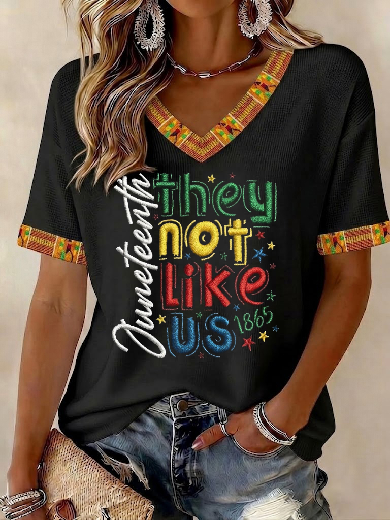 Women's Juneteenth They Not Like Us Printed V-neck T-shirt