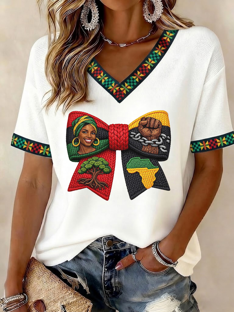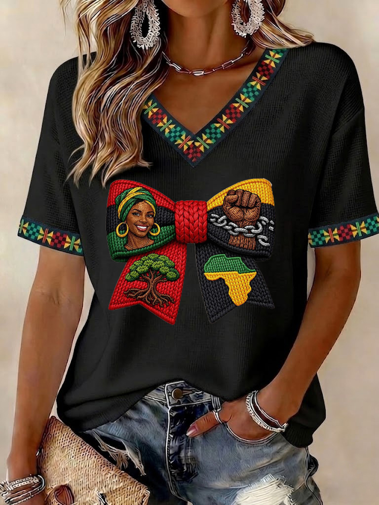 Women's Juneteenth Remebering My Ancestors Print V-Neck Tee