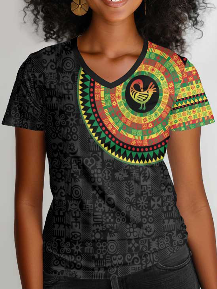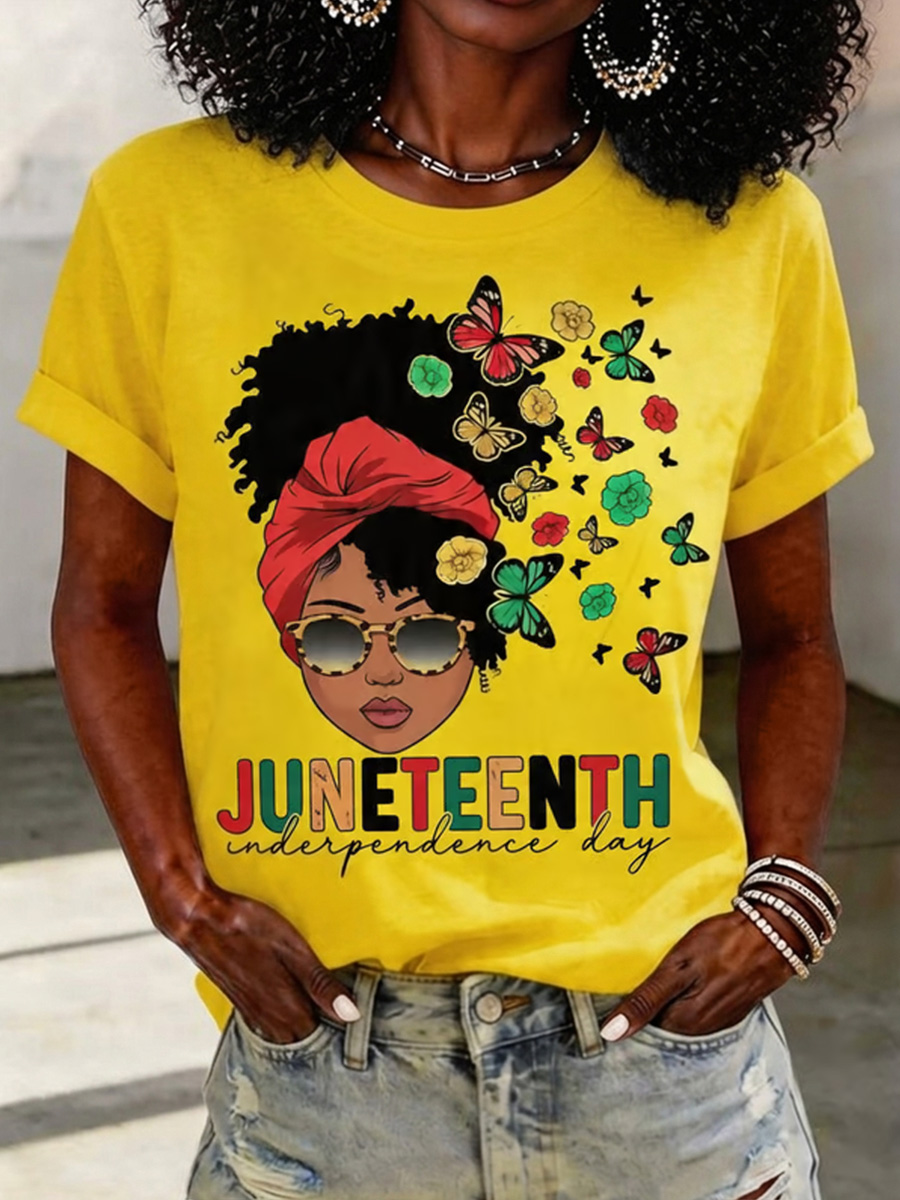 Women's Juneteenth Butterfly Print Casual V-Neck Tee