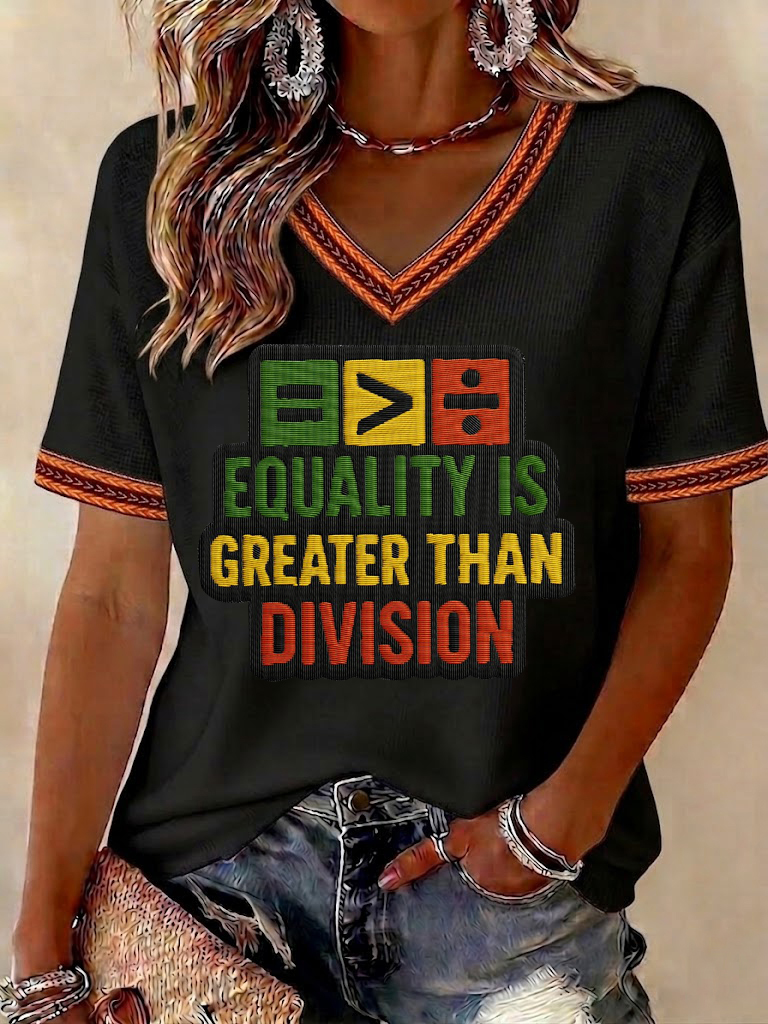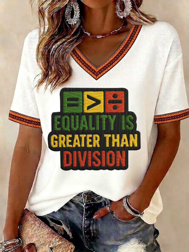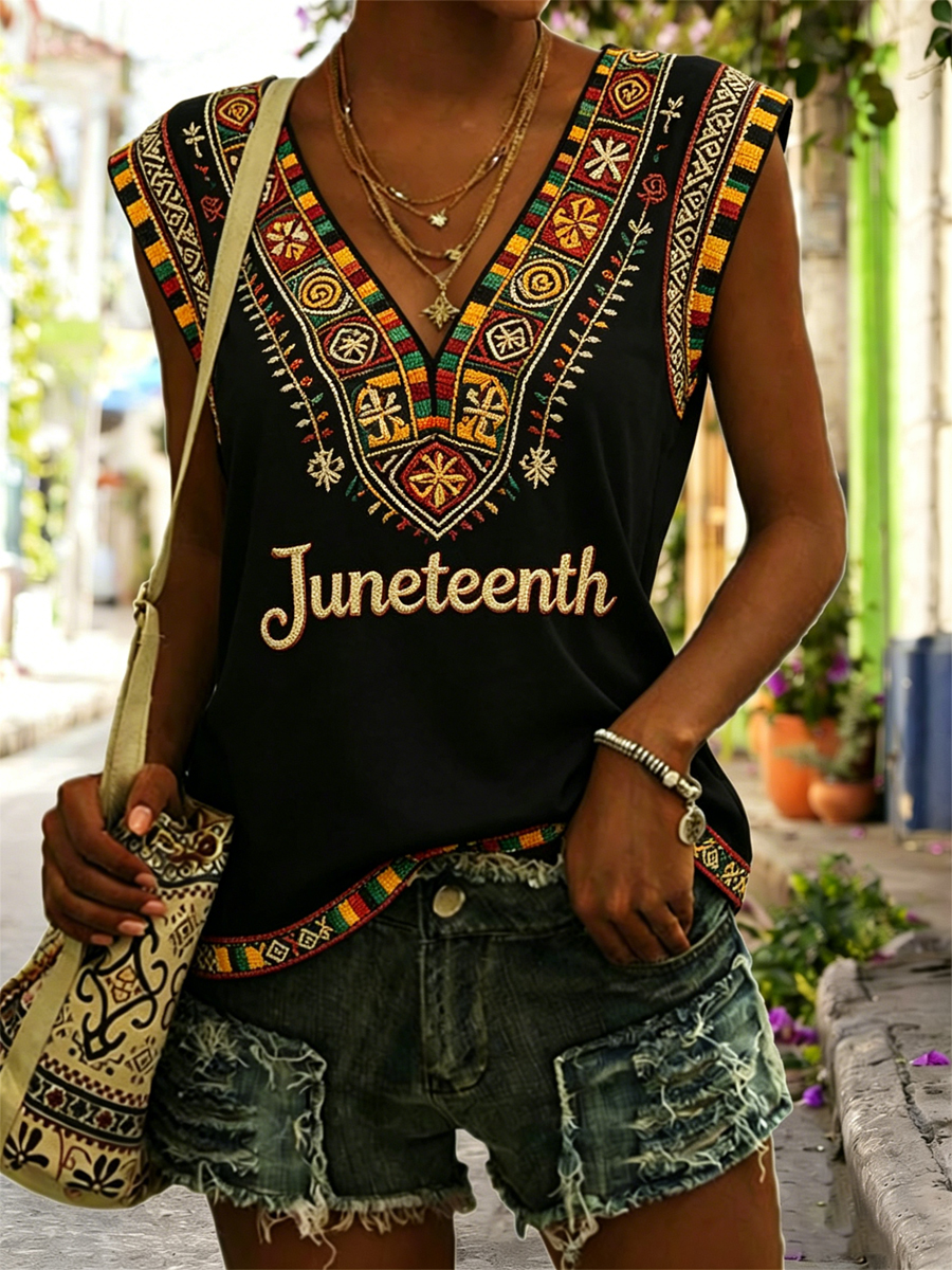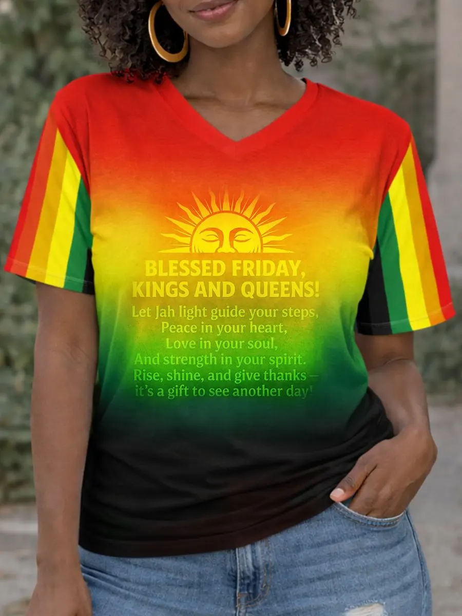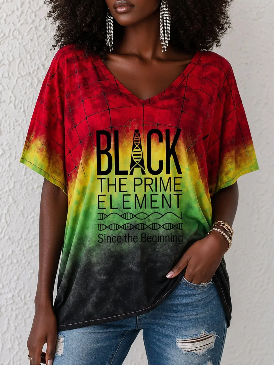 Women's Juneteenth Design Print V-Neck Casual T-Shirt
