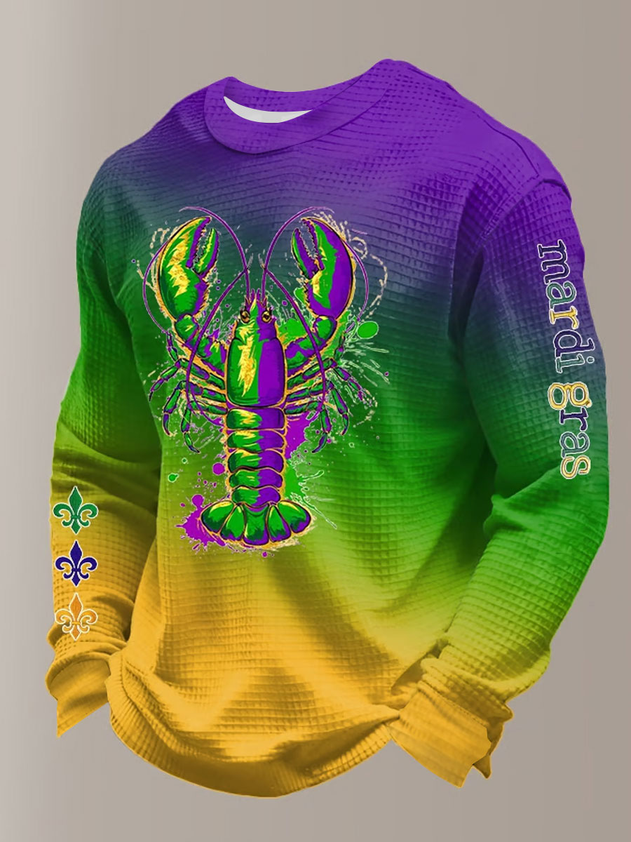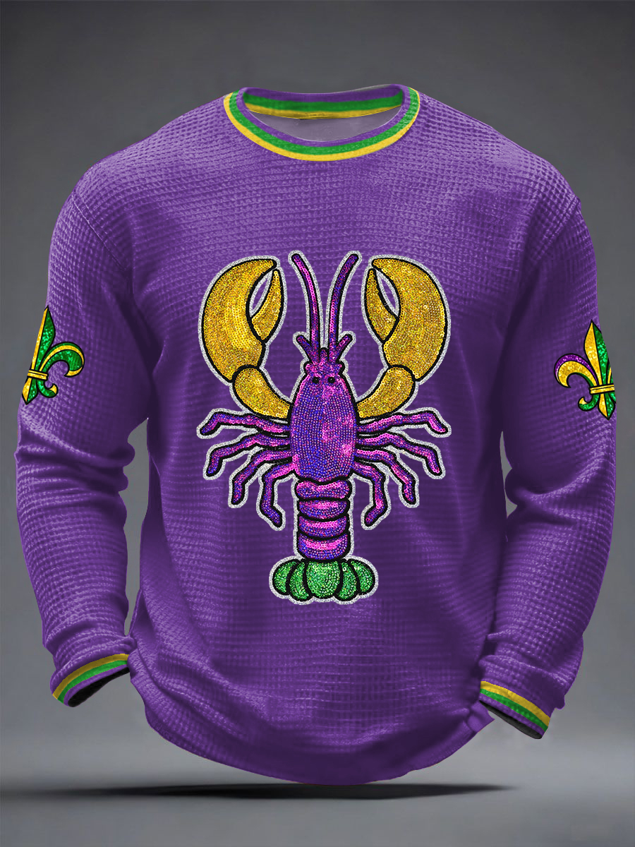Men's Mardi Gras Lobster Fleur De Lis Print Casual Waffle Long Sleeve T-Shirt