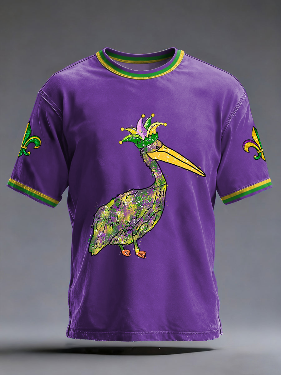 Men's Mardi Gras Pelican Fleur De Lis Print Casual Tee