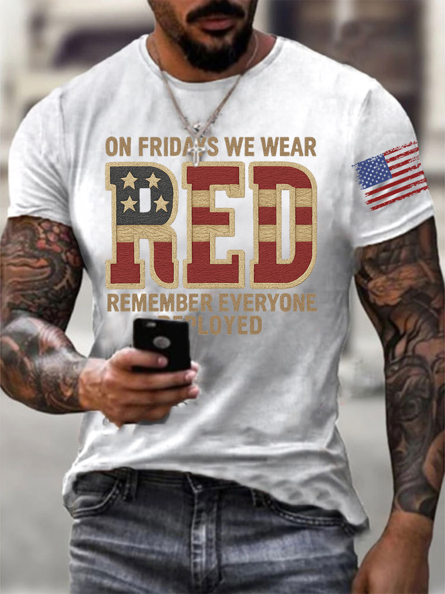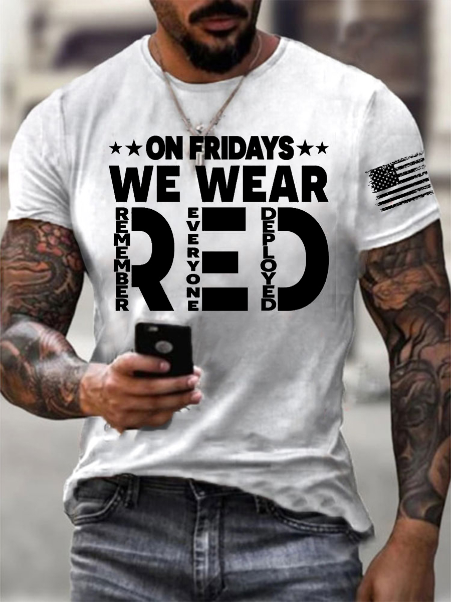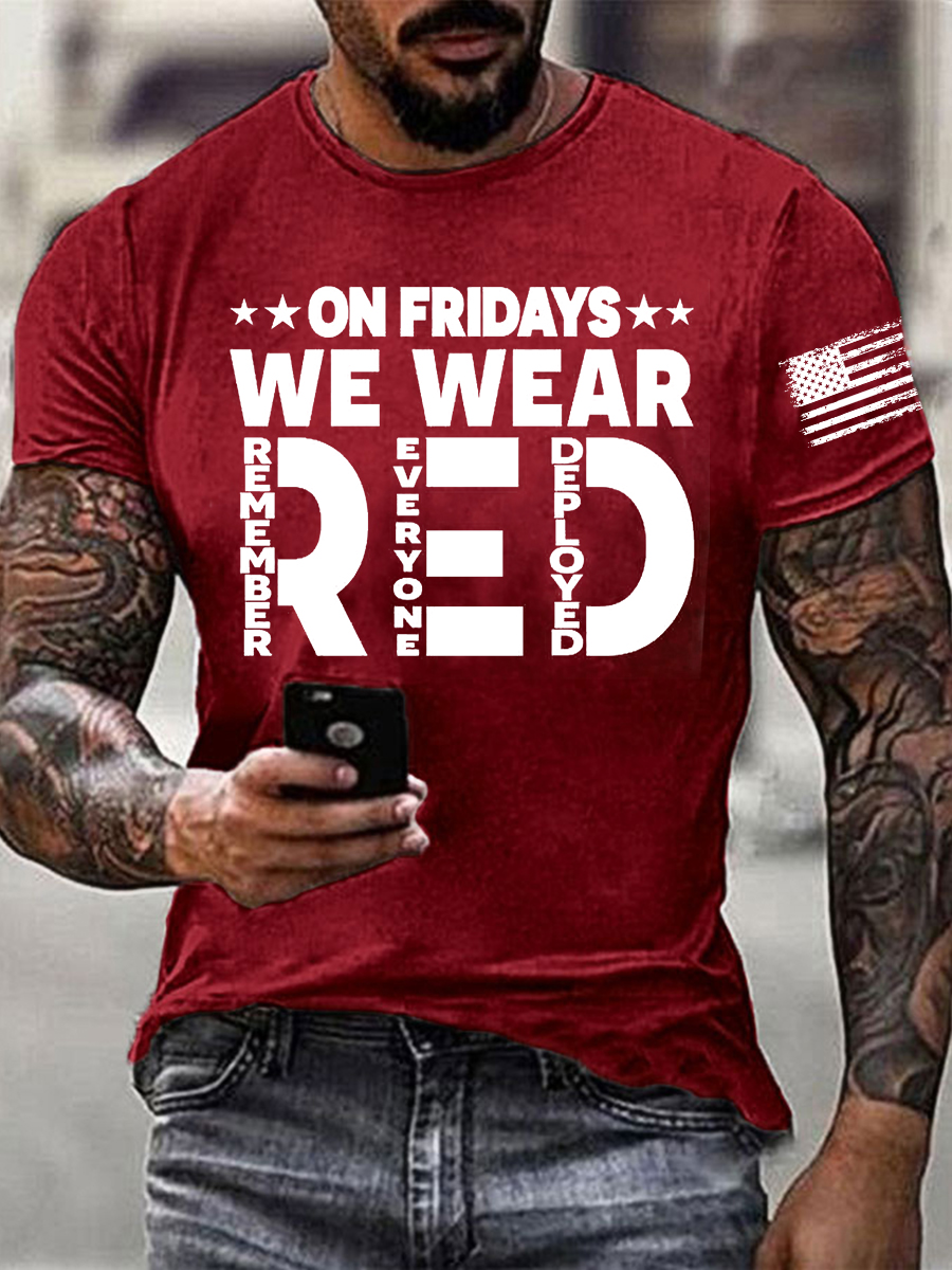 Men'sOn Friday We Wear Red Remember Everyone Deployed Short-sleeved T-shirt