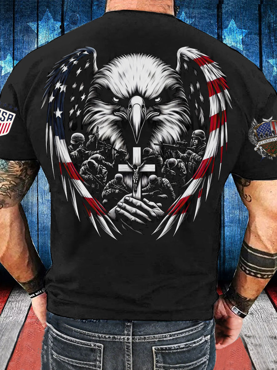 Men's Memorial Day Veteran Eagle Cross Printed T-shirt