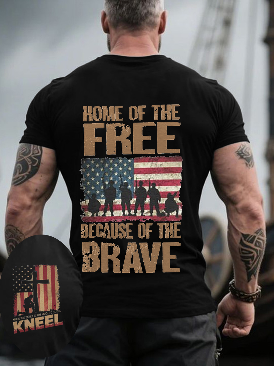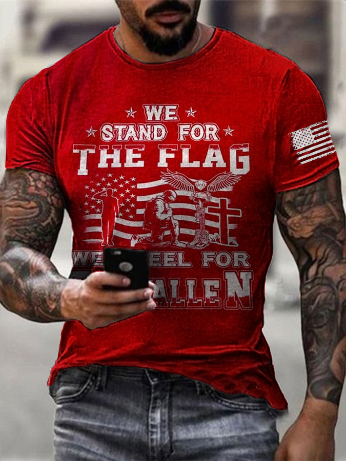 Men's Memorial Day Stand For The Flag Kneel For The Fallen Printed Short-sleeved T-shirt