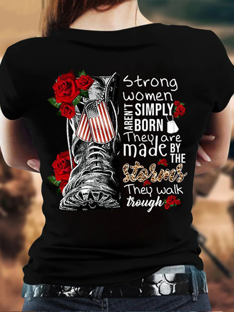 Women's Proud Female Veteran Print Round Neck T-shirt