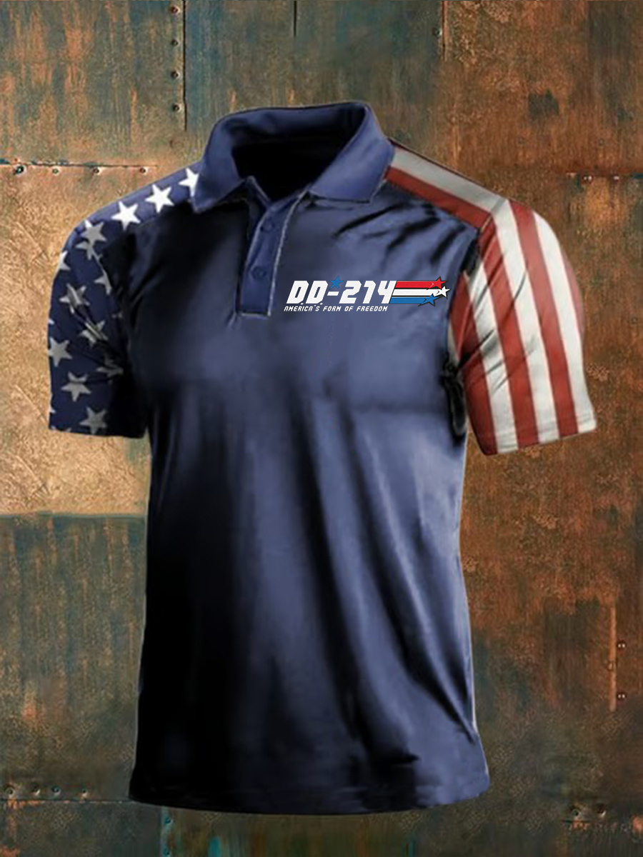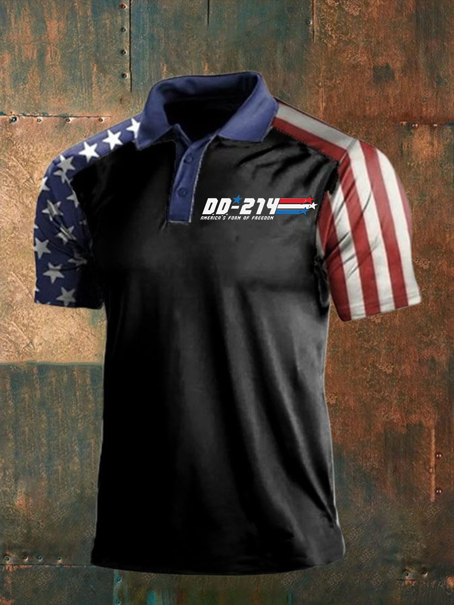Men's Veteran Printed Casual Polo Shirt