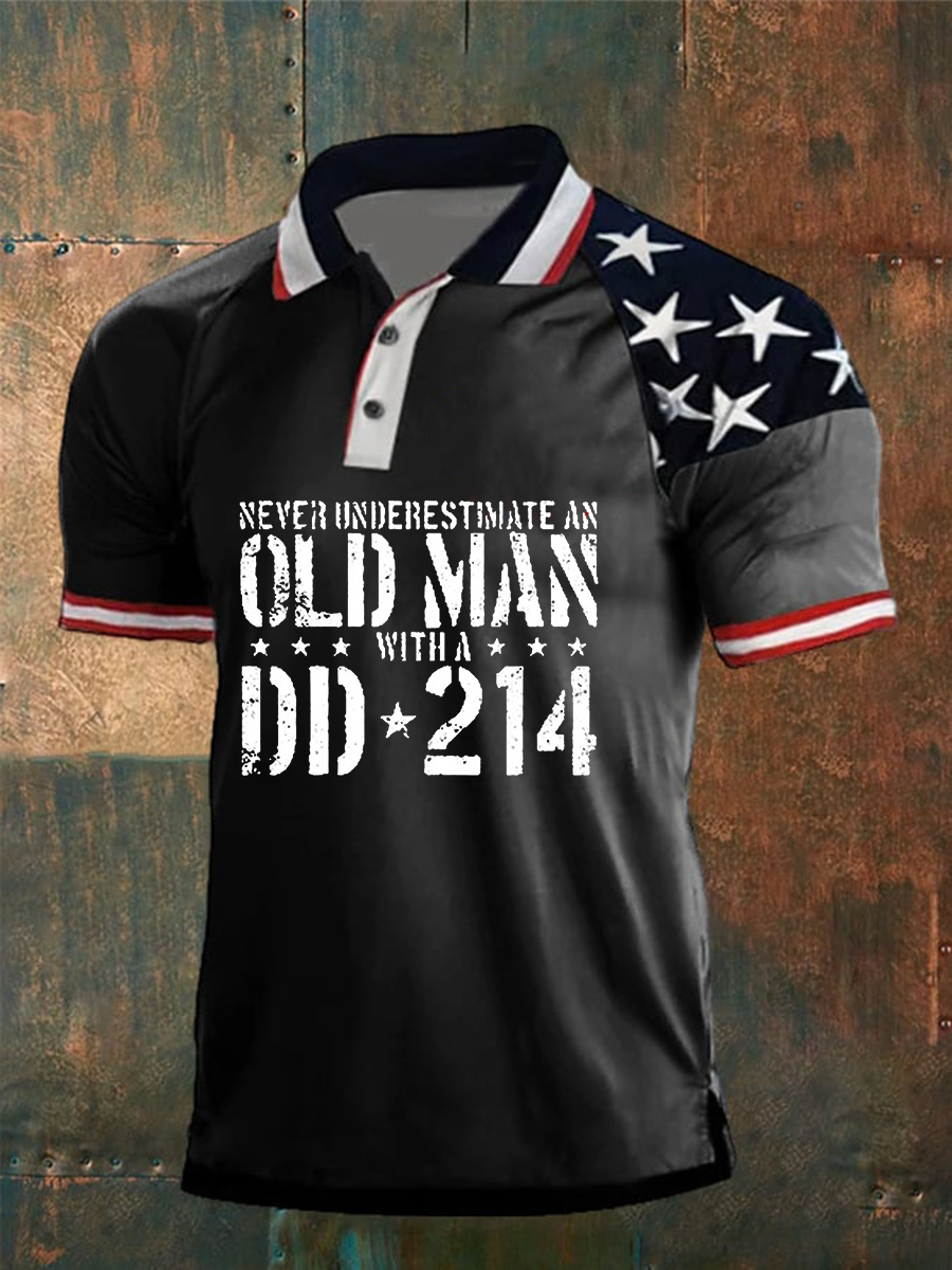 Men's Never Underestimate An Old Man With A DD-214 Three Buttons Shoulder Sleeve Polo