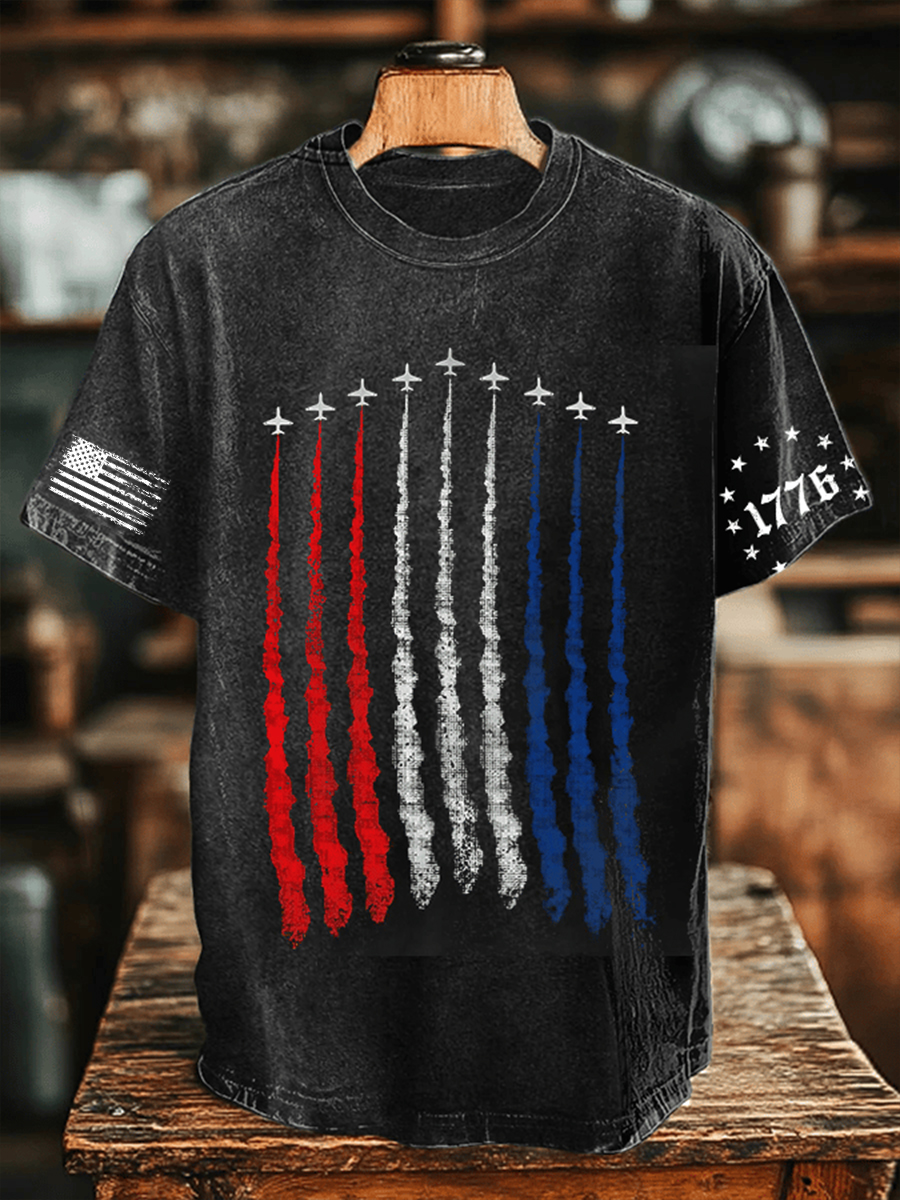 Men's Fighter Jets Red White Blue Short Sleeves T-shirt