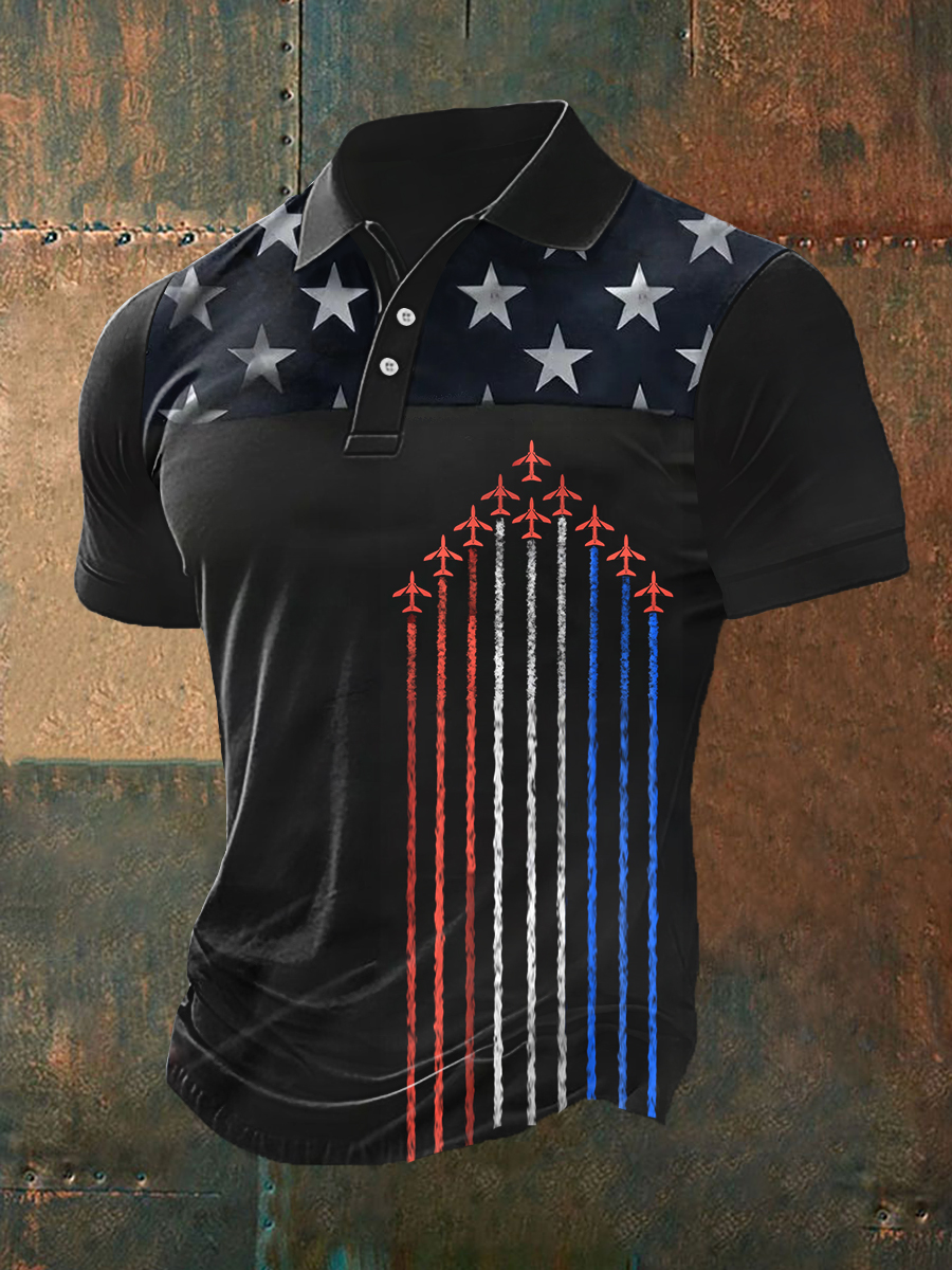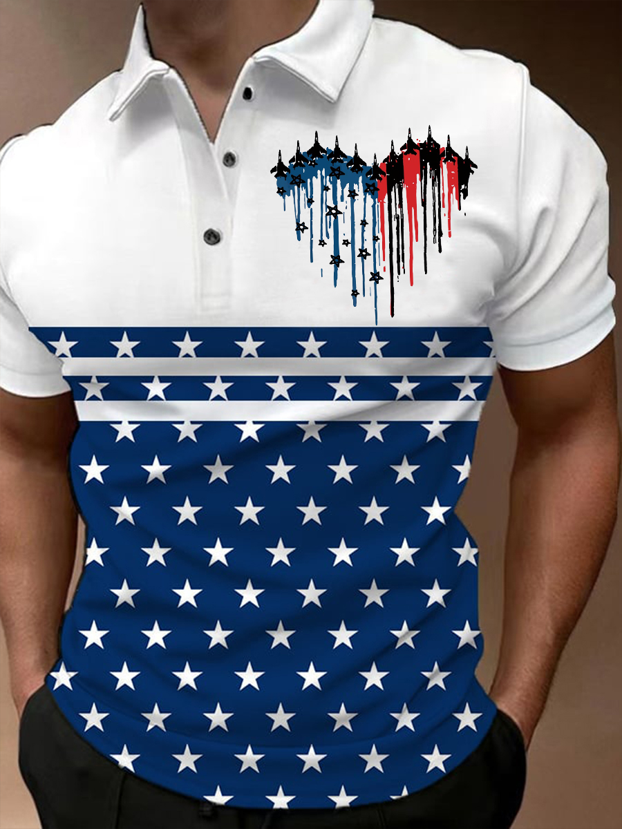 Men's Fighter Jets Red White Blue Short Sleeve Polo Shirt