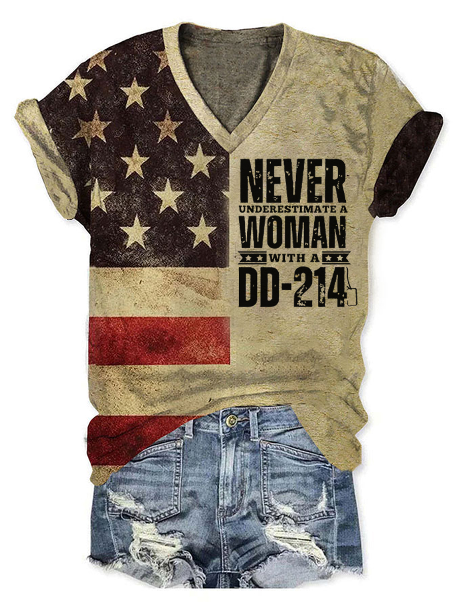 Women's Never Underestimate A Woman With A DD214 Printed V-neck T-shirt